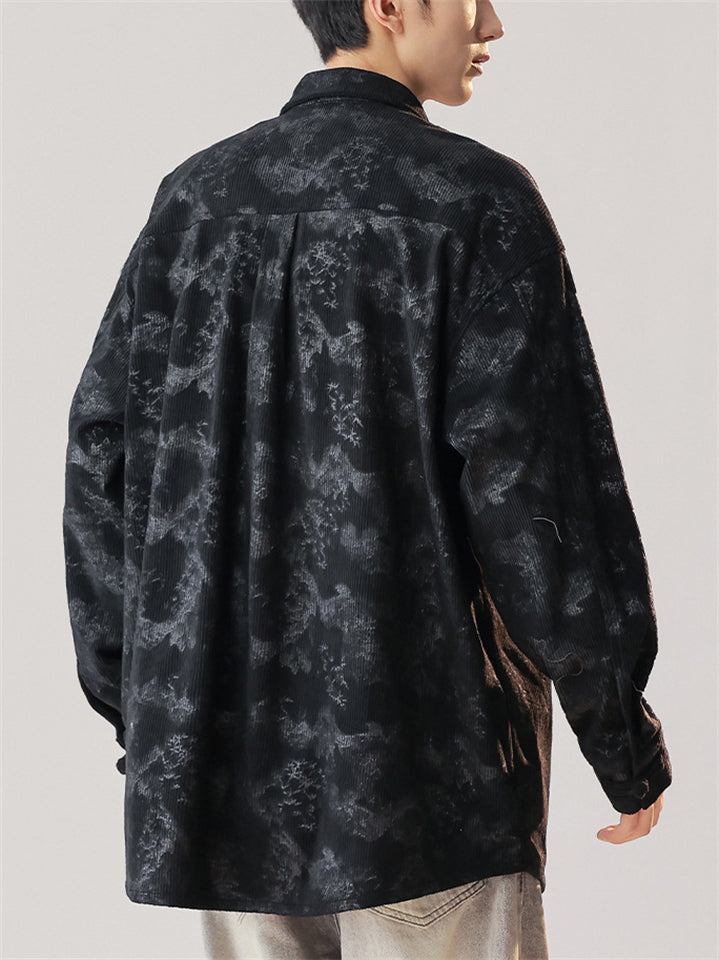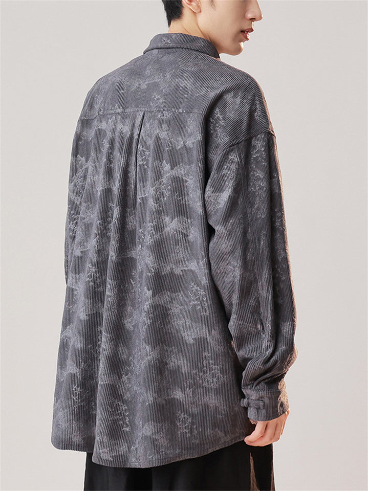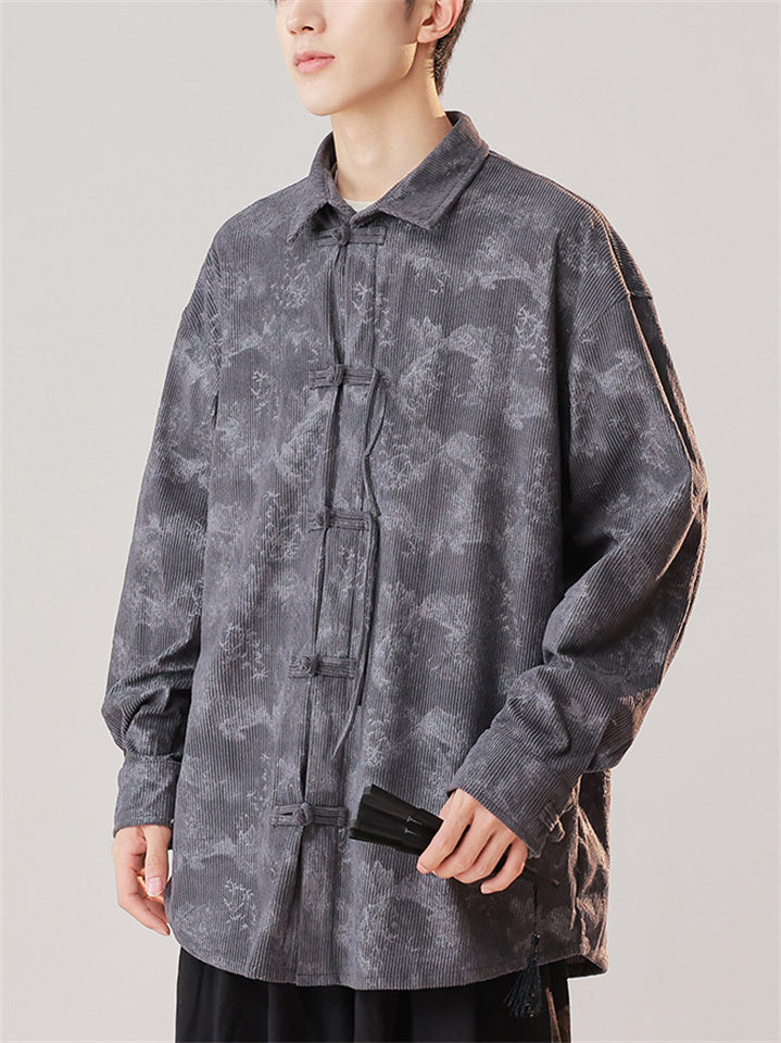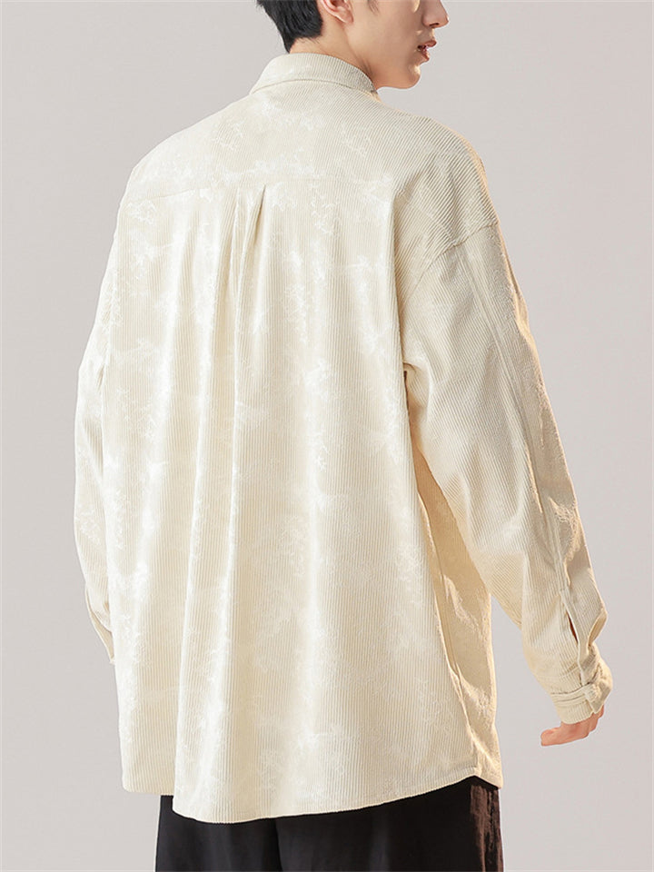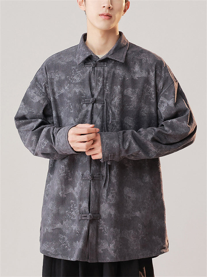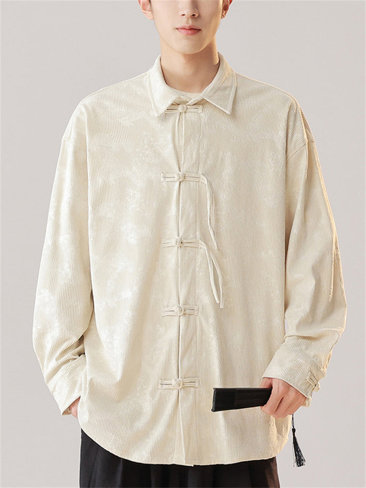 Chinese Style Men's Corduroy Texture Lapel Long Sleeve Shirts