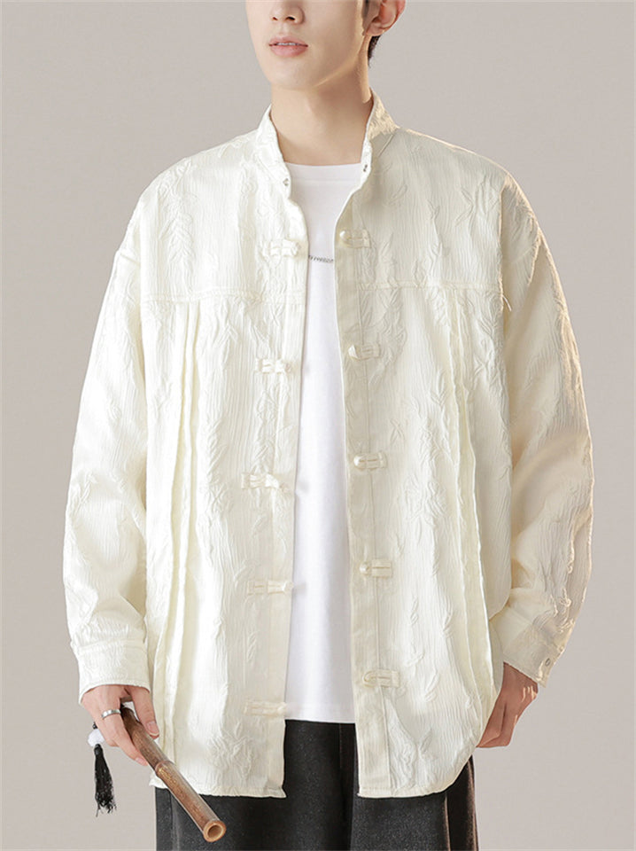 Men's Autumn Vintage Jacquard Stand Collar Long Sleeve Shirts