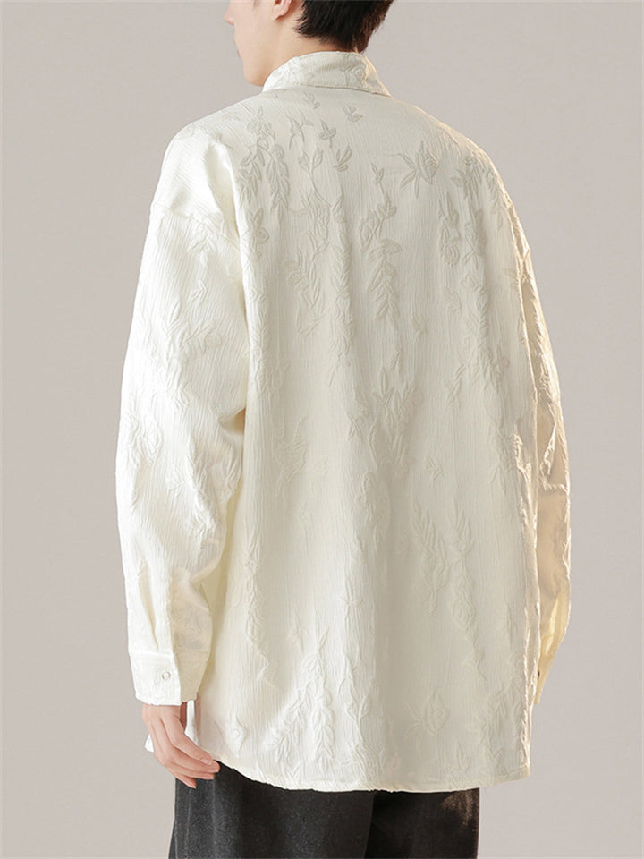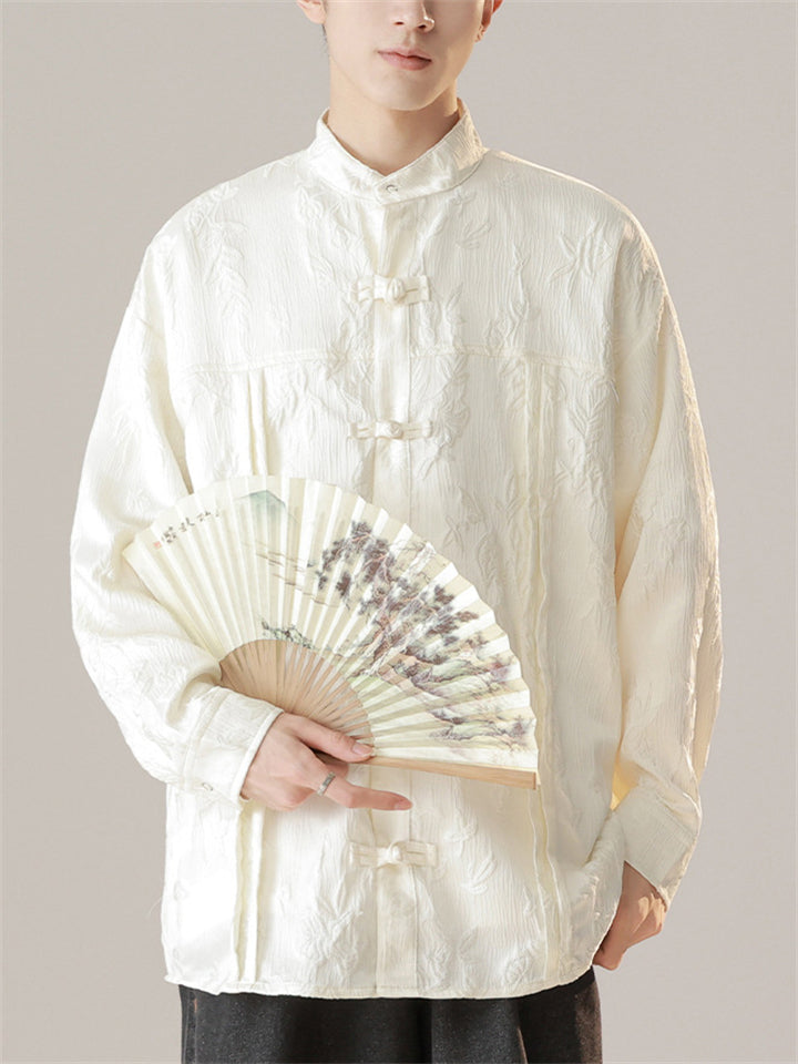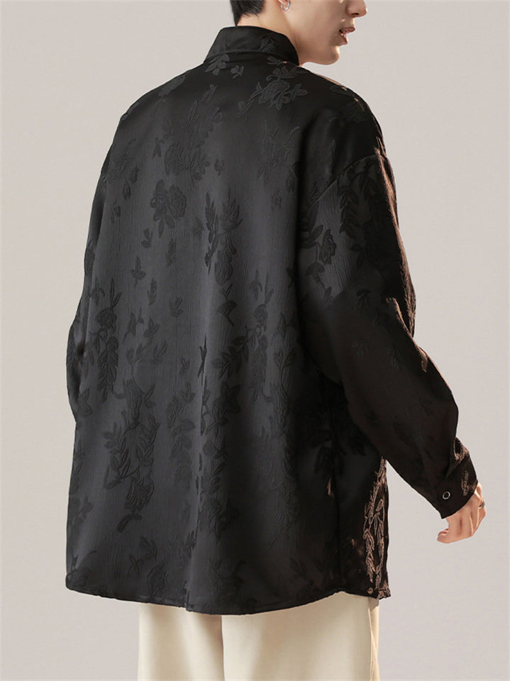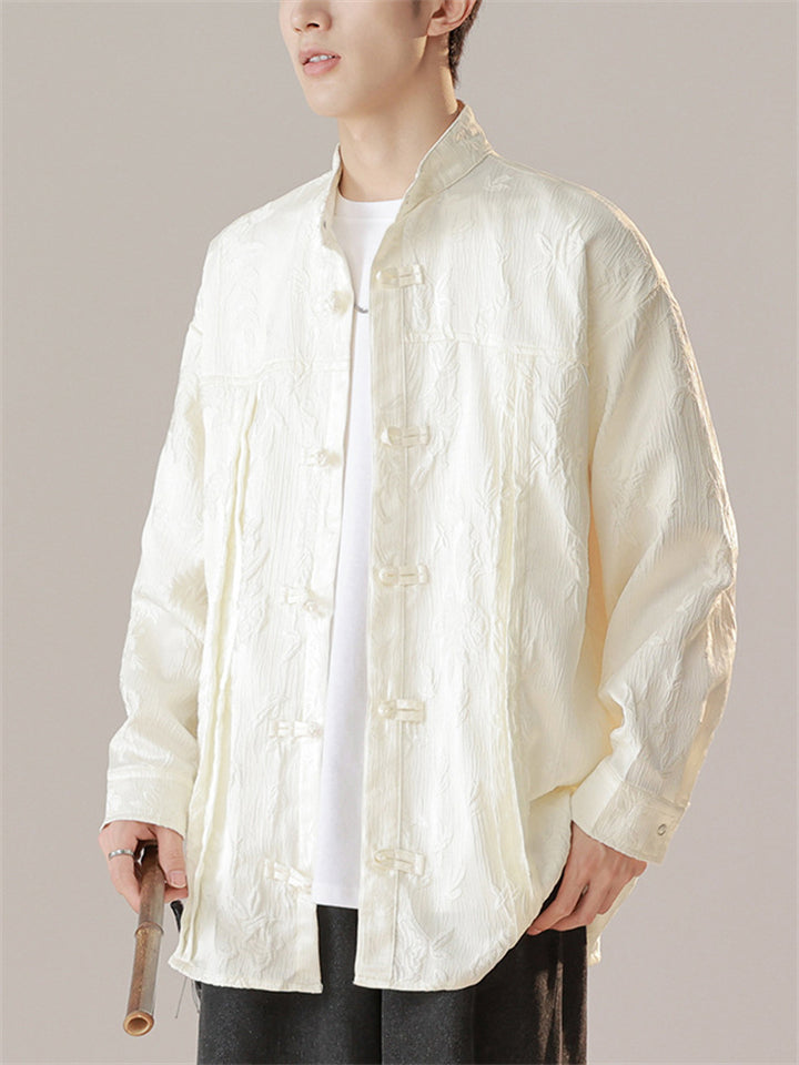 Chinese Style Men's Daffodil Jacquard Stand Collar Long Sleeve Shirts