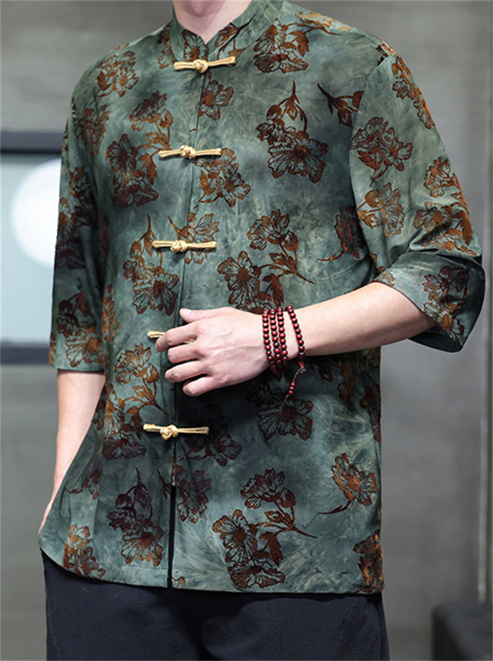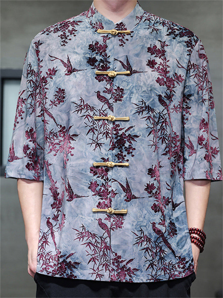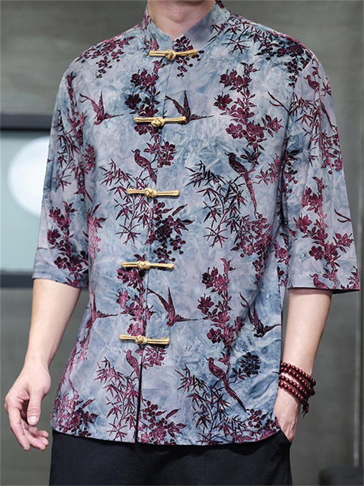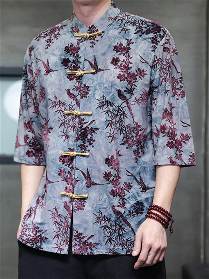 Men's Autumn Vintage Chinese Style Printed Frog Button Tangsuit Shirts