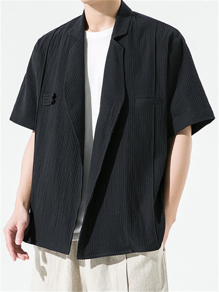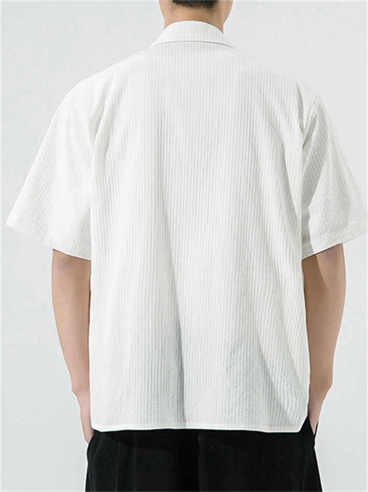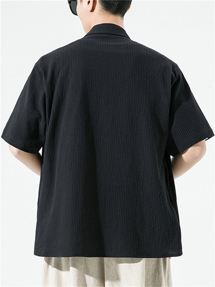 Chinese Style Retro Cotton Linen Short Sleeve Shirt for Men