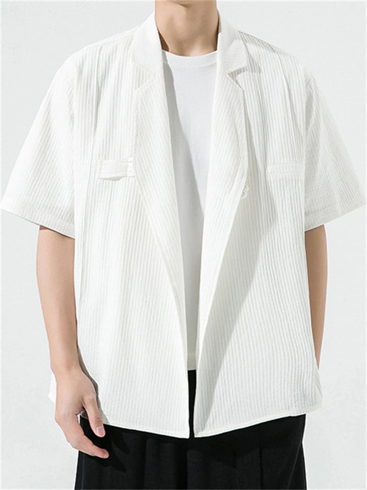 Men's Summer Simple Stand Collar Button Up Half Sleeve Shirts