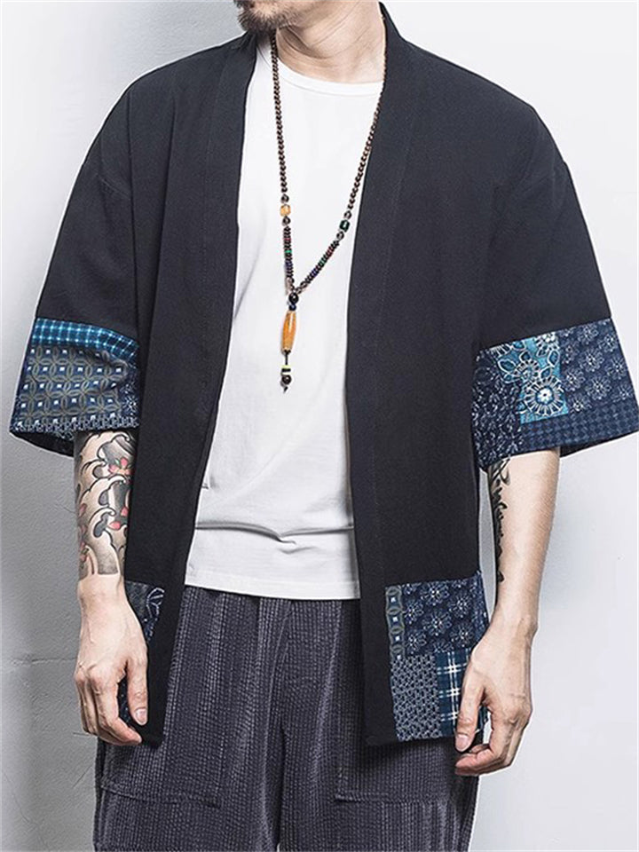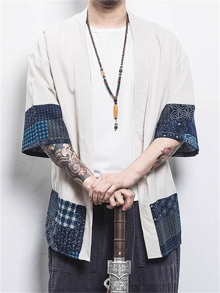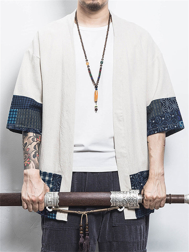 Chinese Style Taoist Robe Men's 3/4 Sleeve Shirts