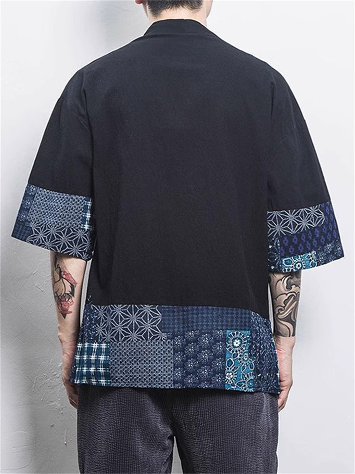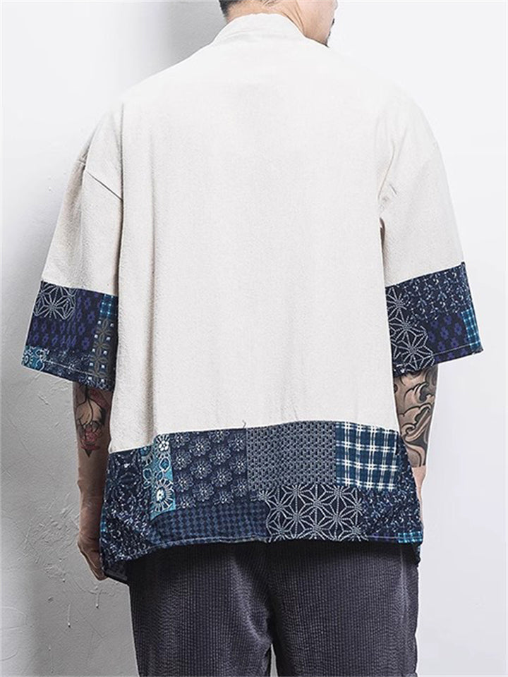 Men's Vintage Patchwork Ethnic Style Printed Half Sleeve Shirts