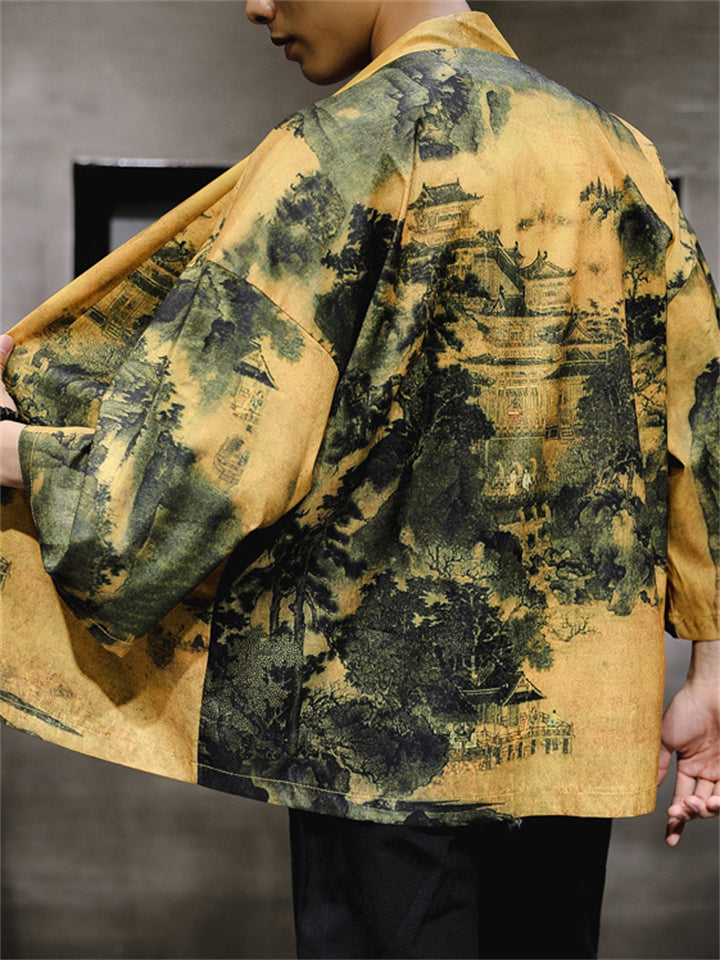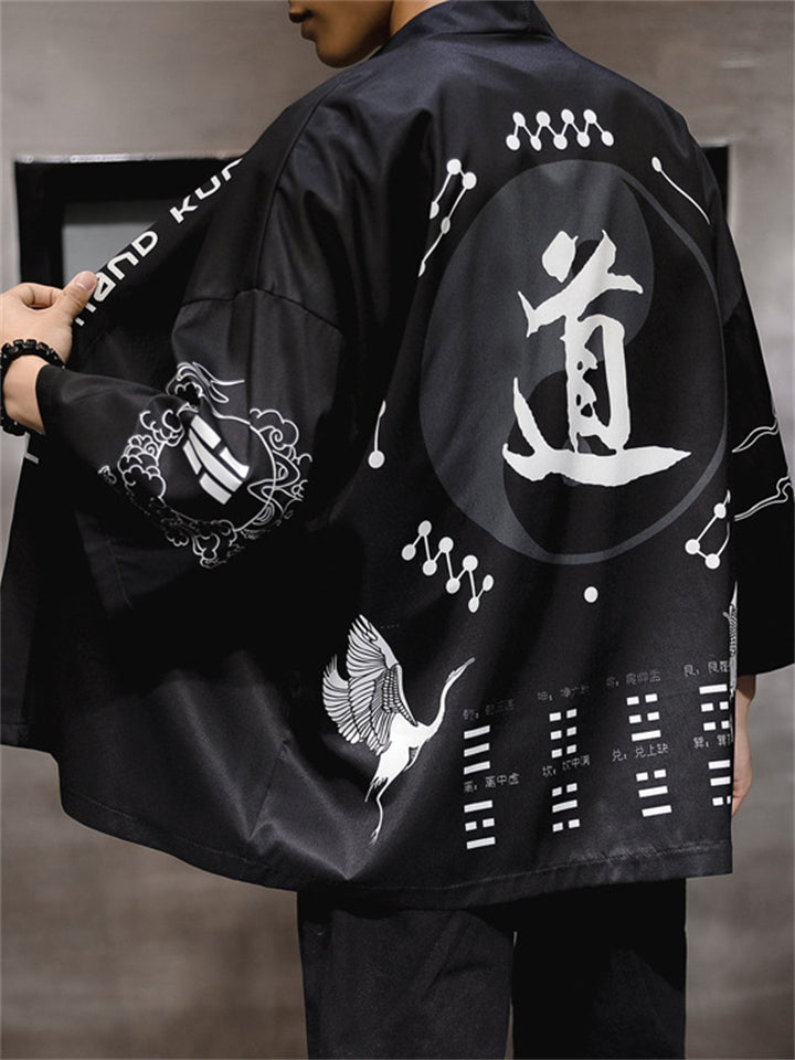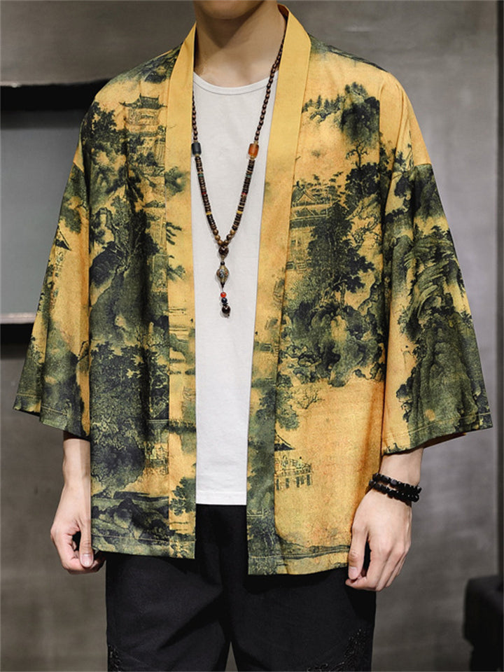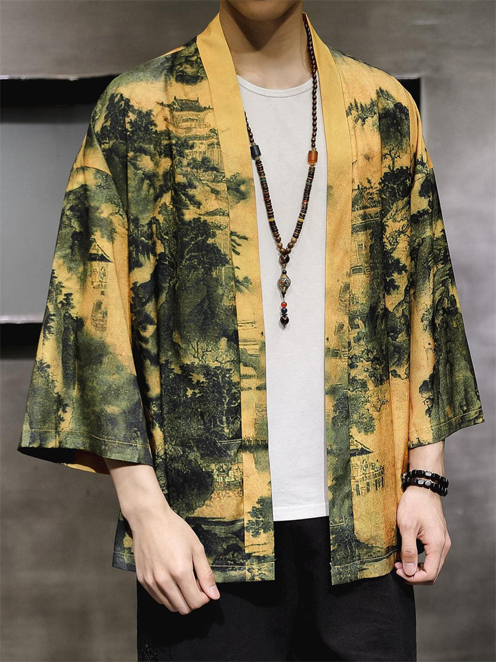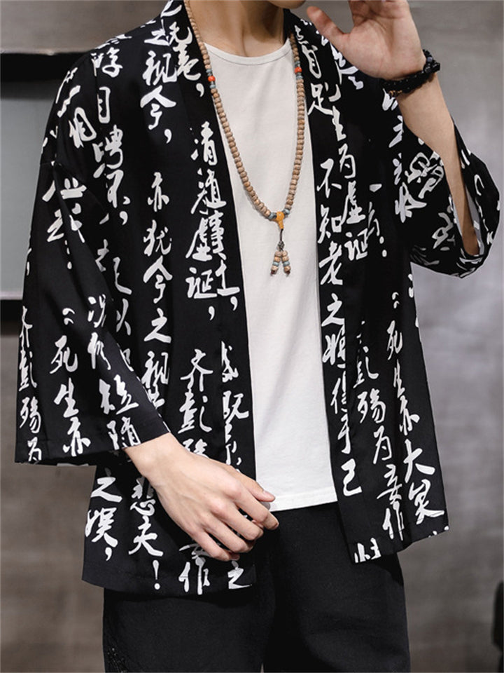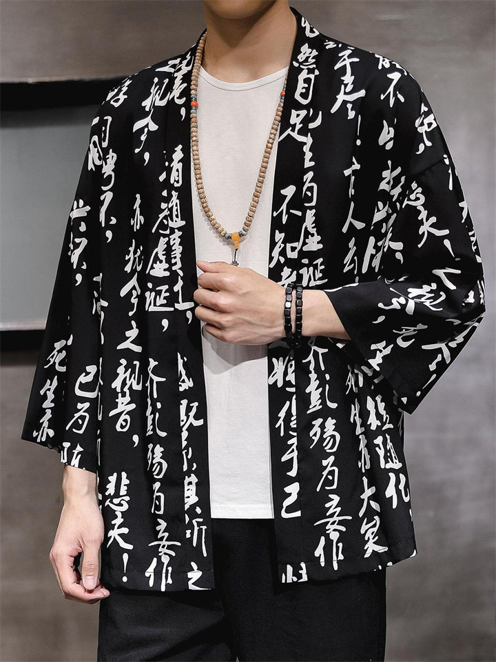 Chinese Zen Style Casual Print Long Sleeve Cardigan for Men