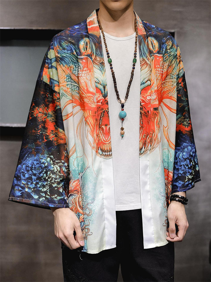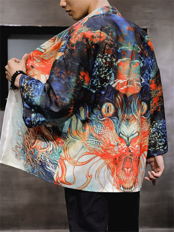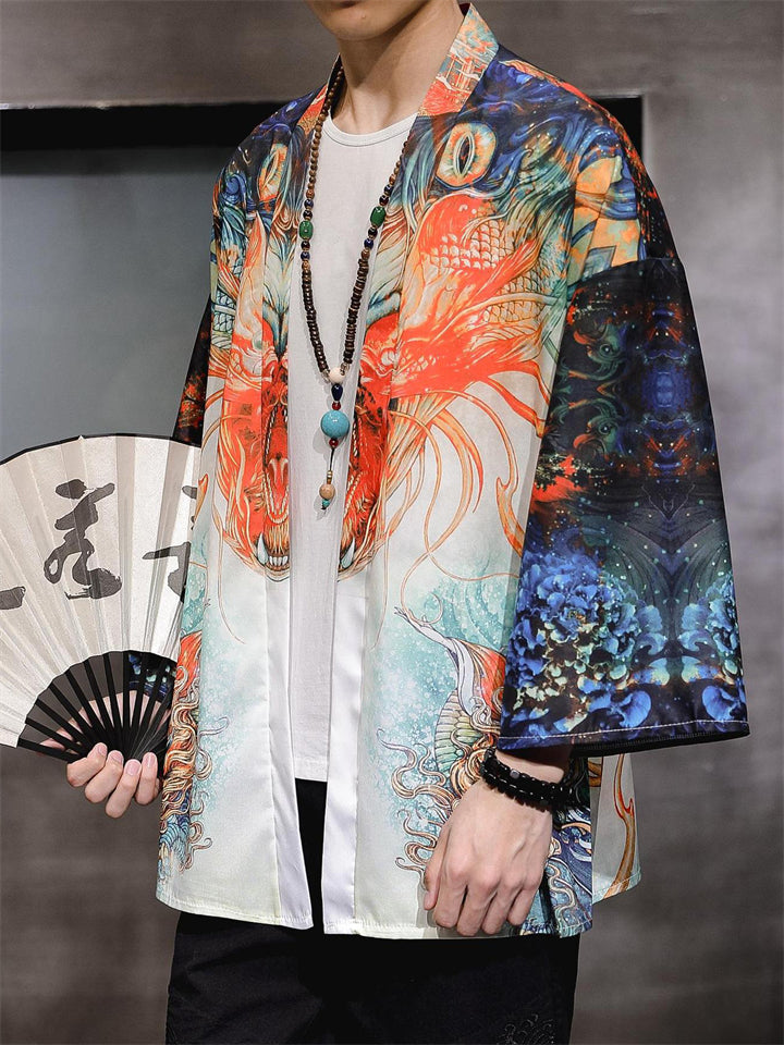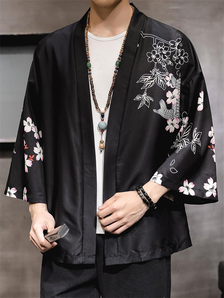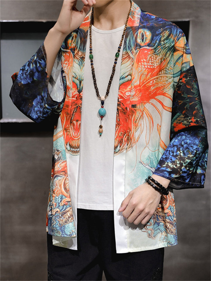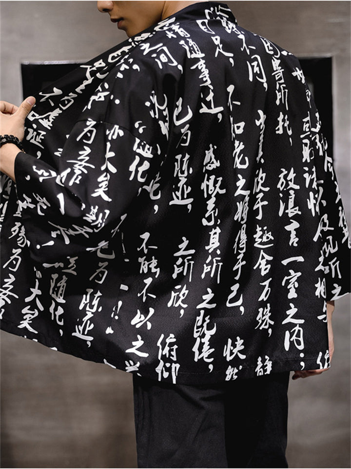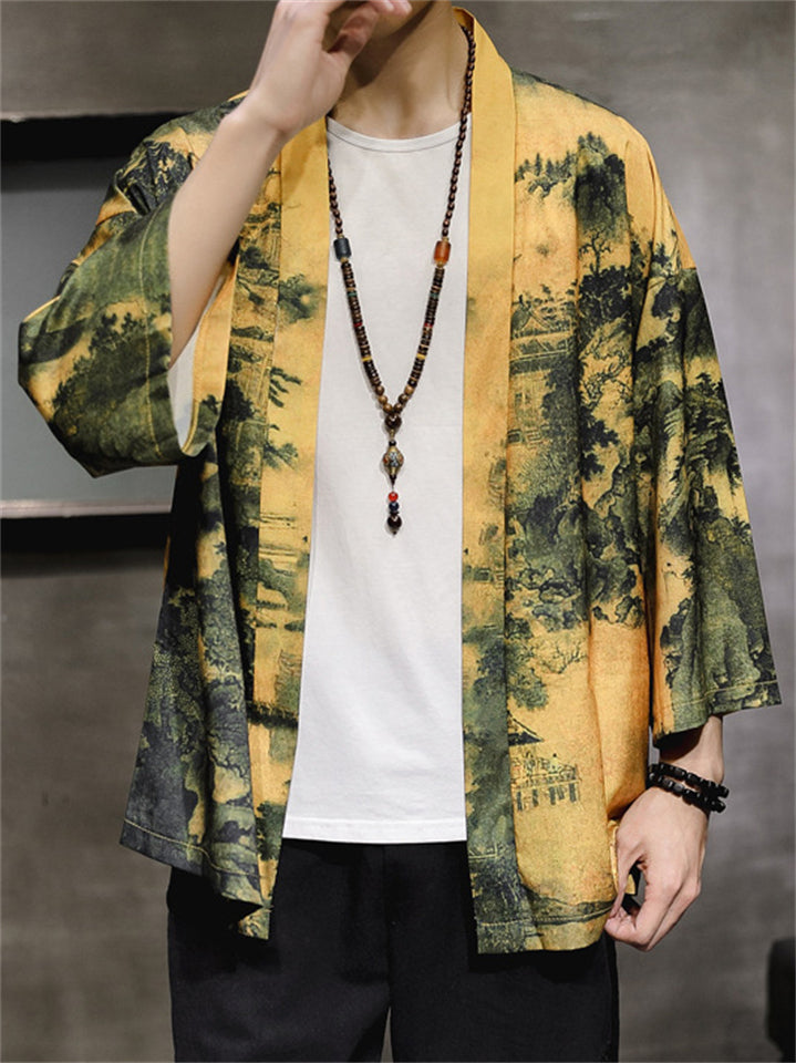 Chinese Zen Style Casual Print Long Sleeve Cardigan for Men