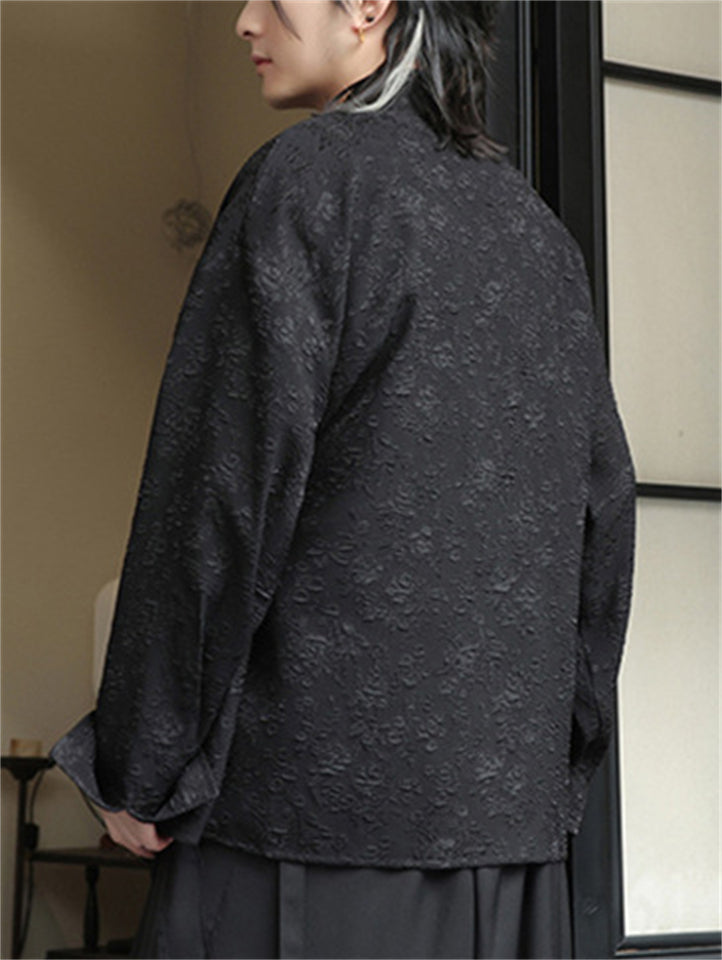 Men's Autumn Vintage Jacquard Stand Collar Long Sleeve Shirts