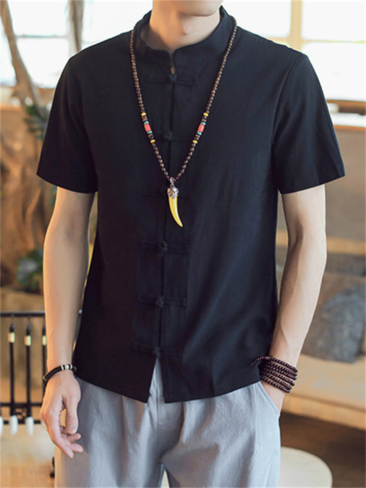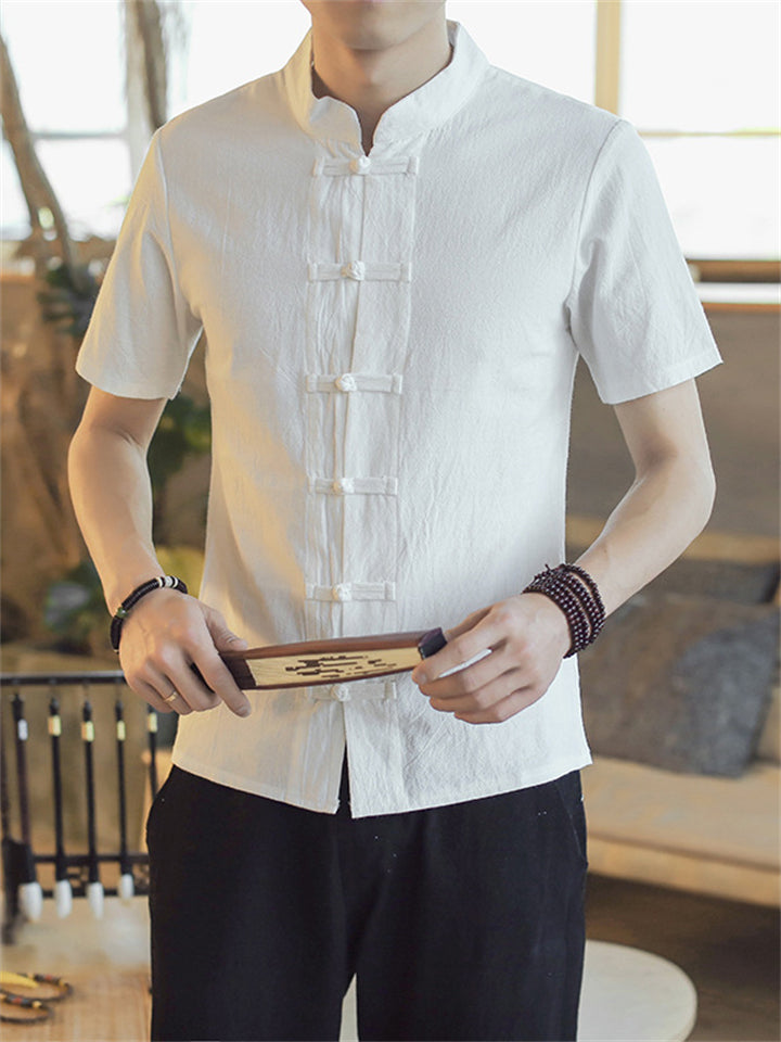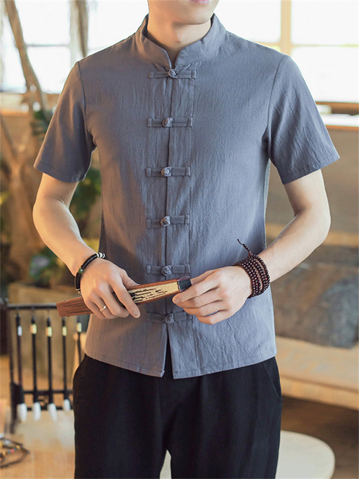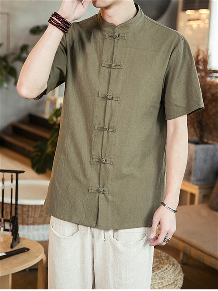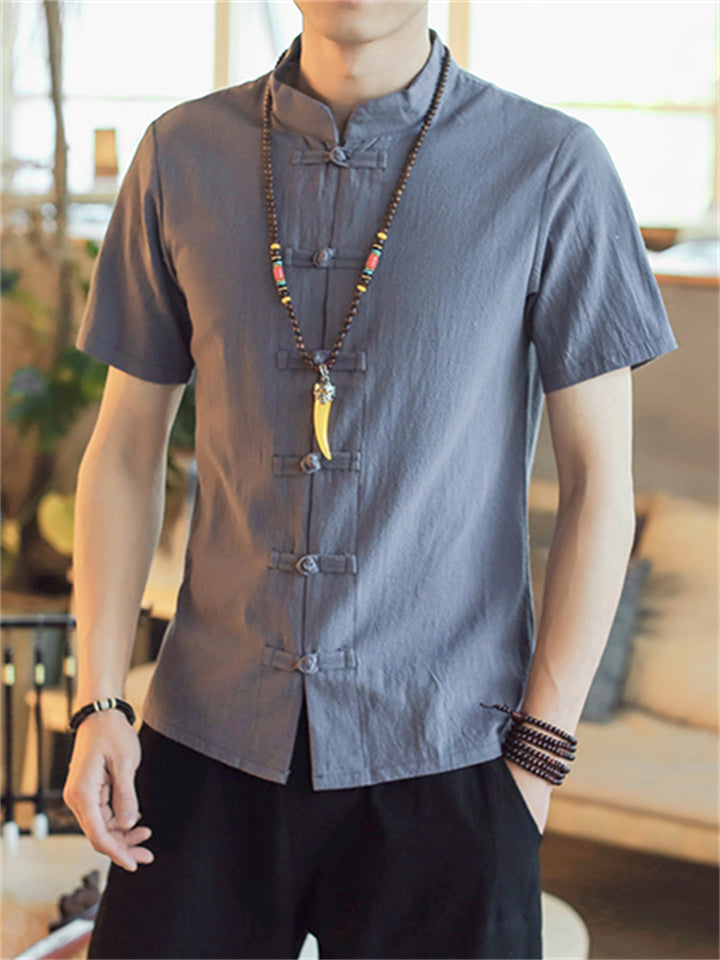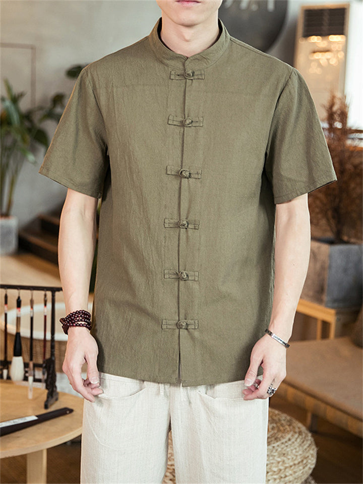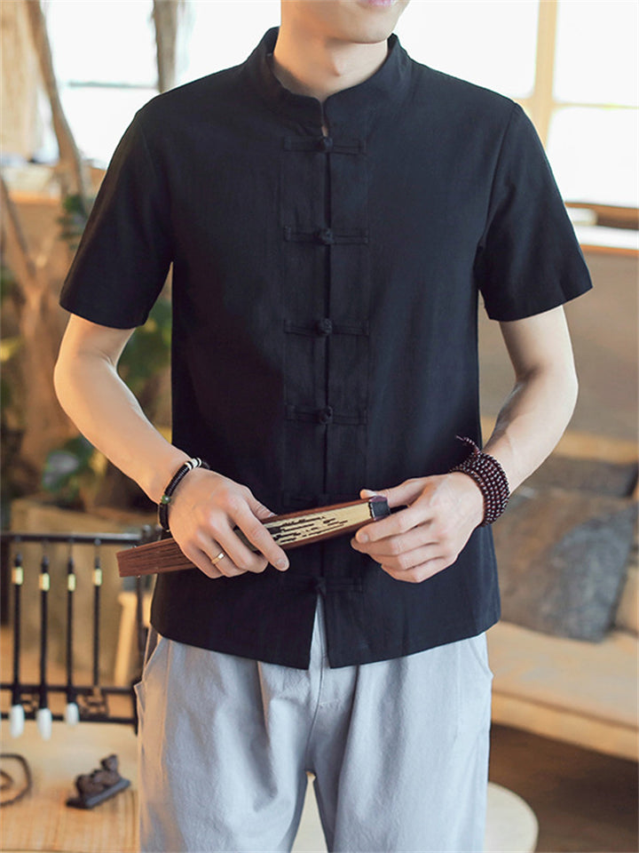 Men's Simple Chinese Style Ramine Stand Collar Tangsuit Shirts
