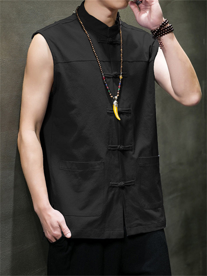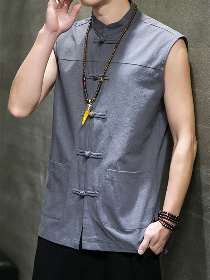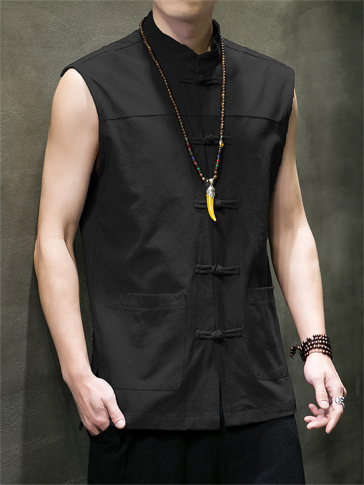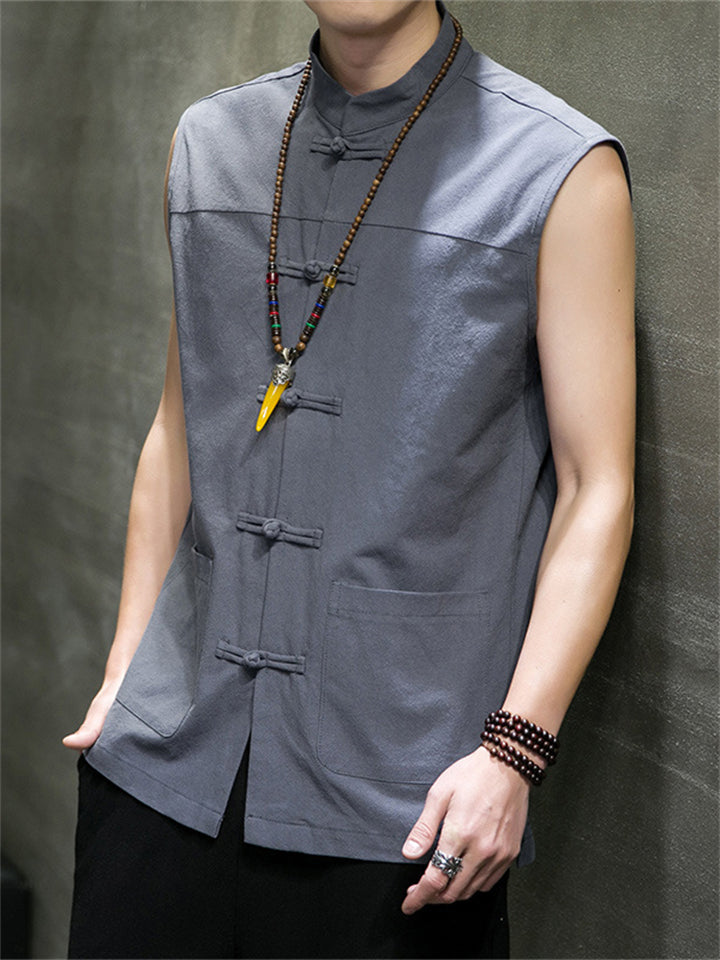 Comfortable Zen Cotton Linen Sleeveless Vest for Men