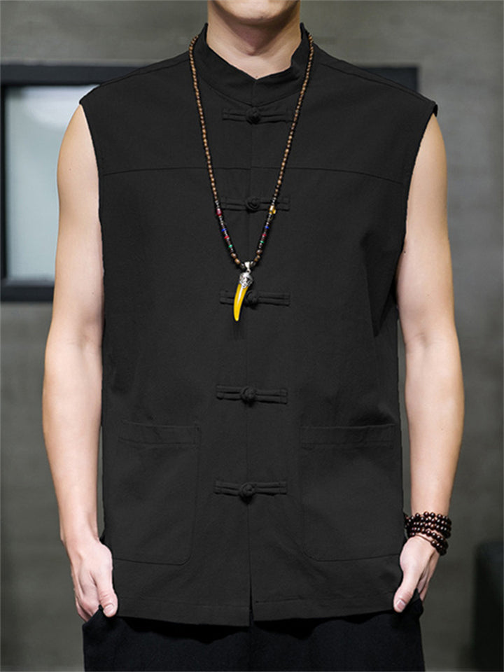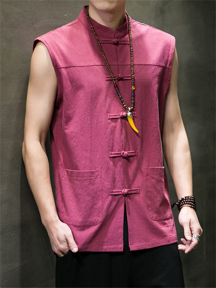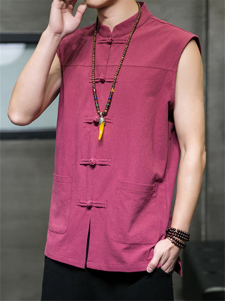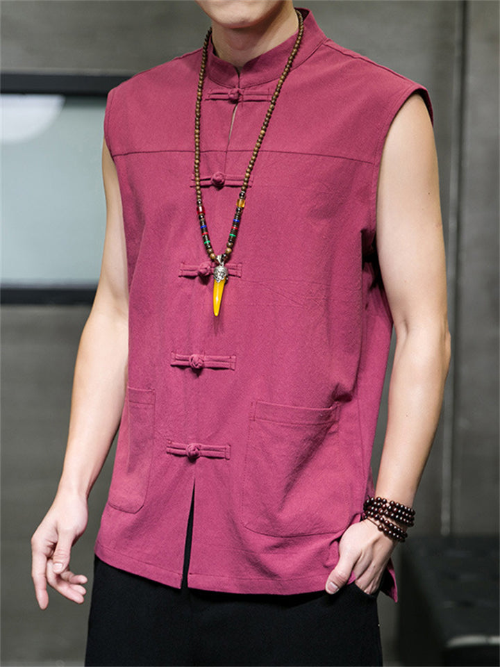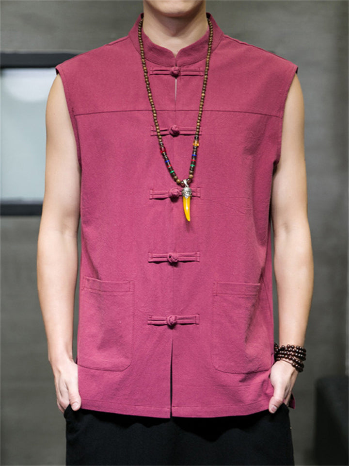 Comfortable Zen Cotton Linen Sleeveless Vest for Men