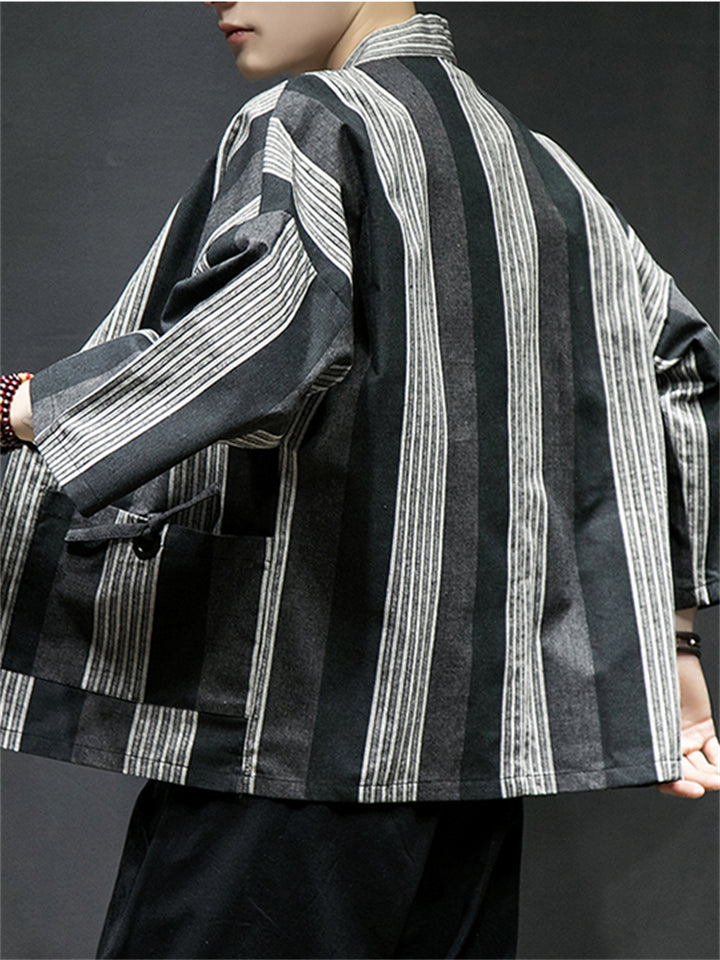 Men's Vintage Summer Solid Color 3/4 Sleeve Stand Collar Shirts