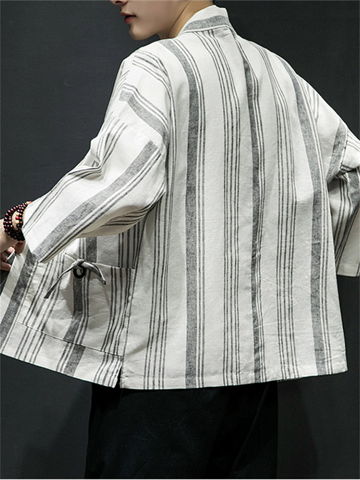 Vintage Long Sleeve Button Up Linen Shirt for Men