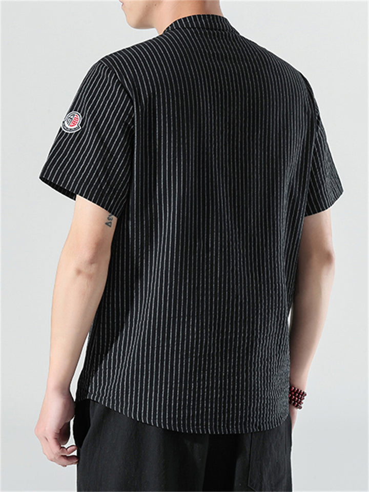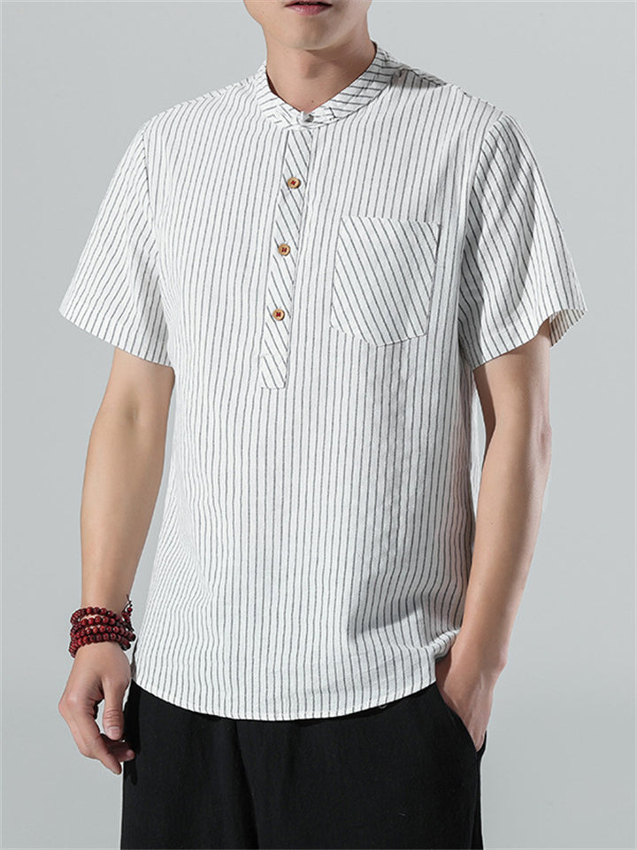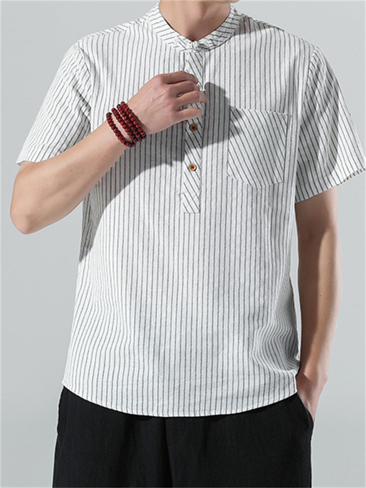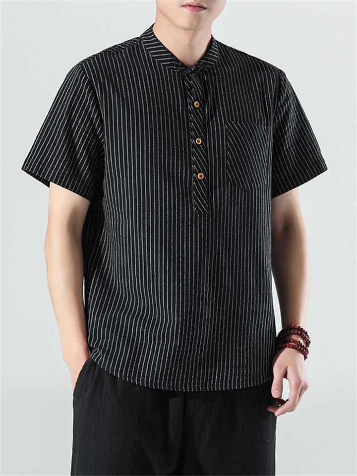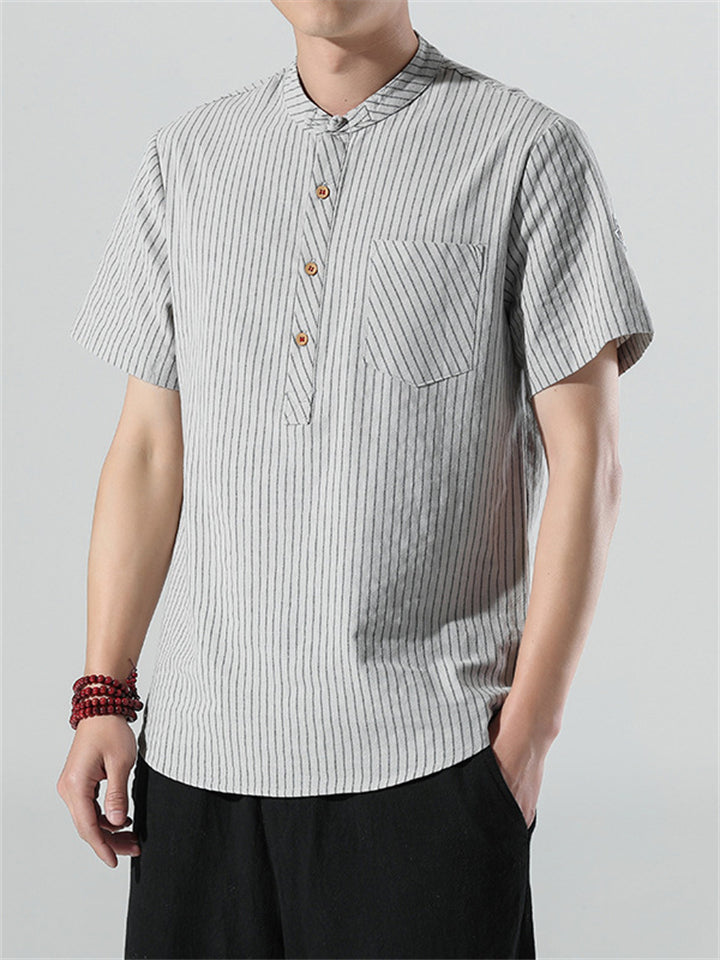Men's Simple Solid Color Stand Collar Pullover Short Sleeve Shirts