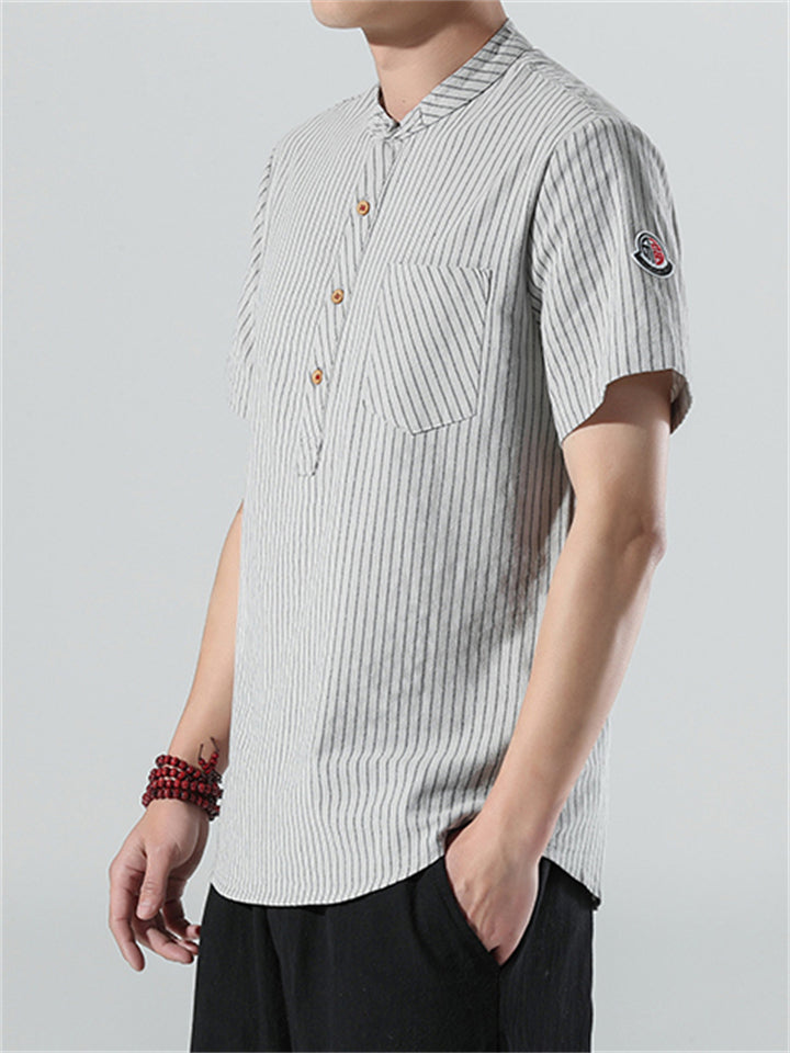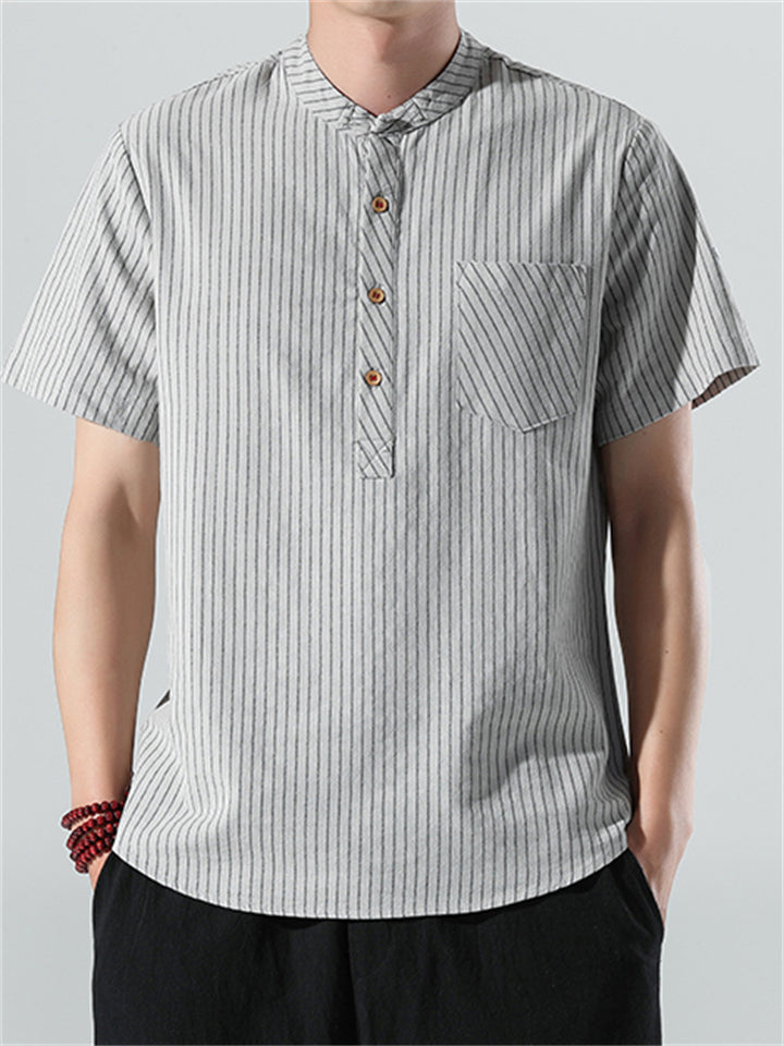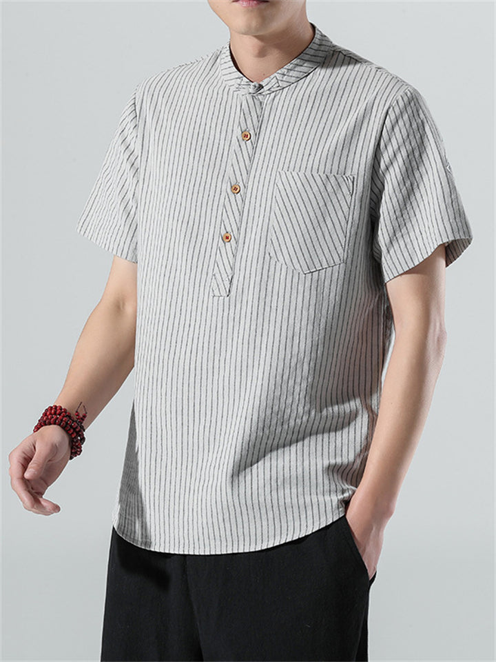 Men's Summer Simple Stand Collar Button Up Half Sleeve Shirts