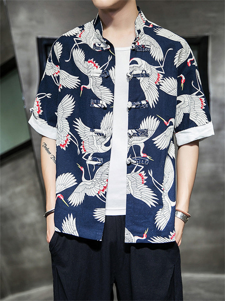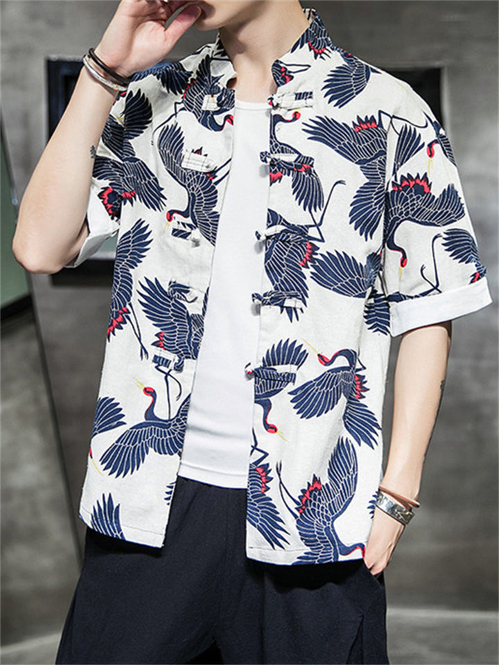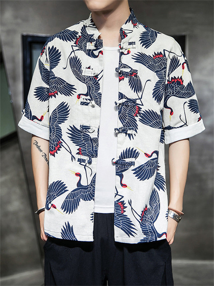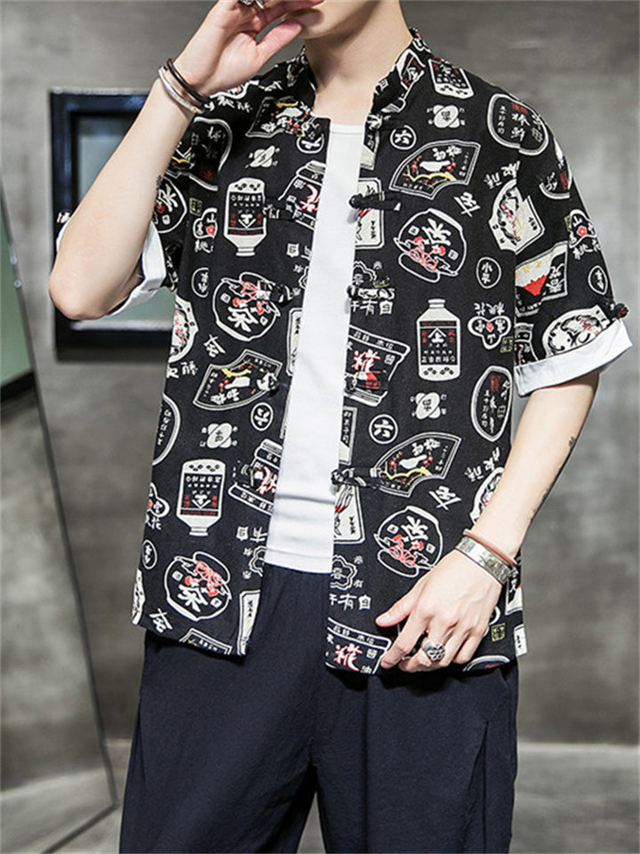 Fashion Chinese Printed Short Sleeve Men's Shirts