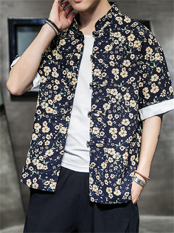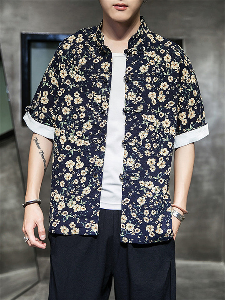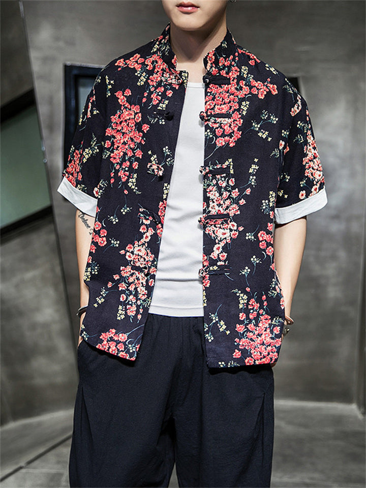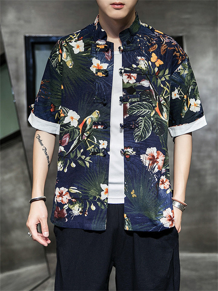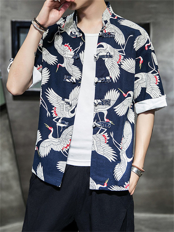 Fashion Chinese Printed Short Sleeve Men's Shirts