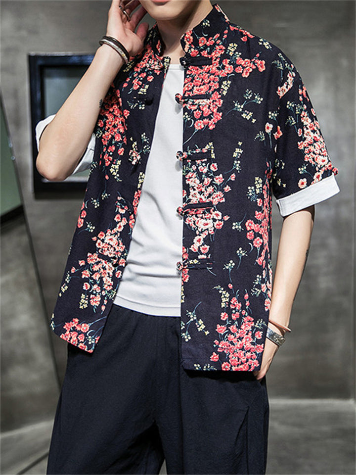Men's Autumn Vintage Chinese Style Printed Frog Button Tangsuit Shirts