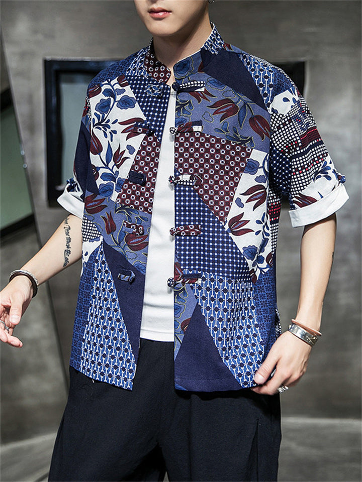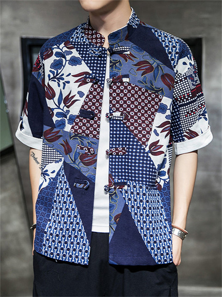 Men's Vintage Patchwork Ethnic Style Printed Half Sleeve Shirts