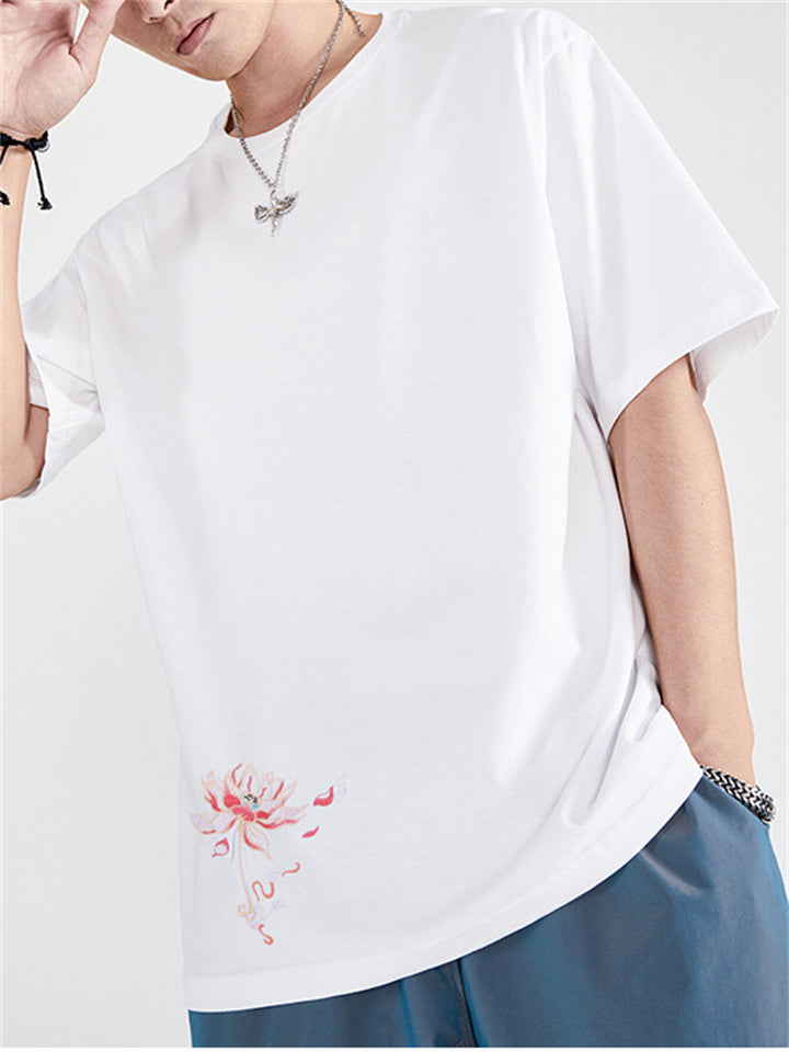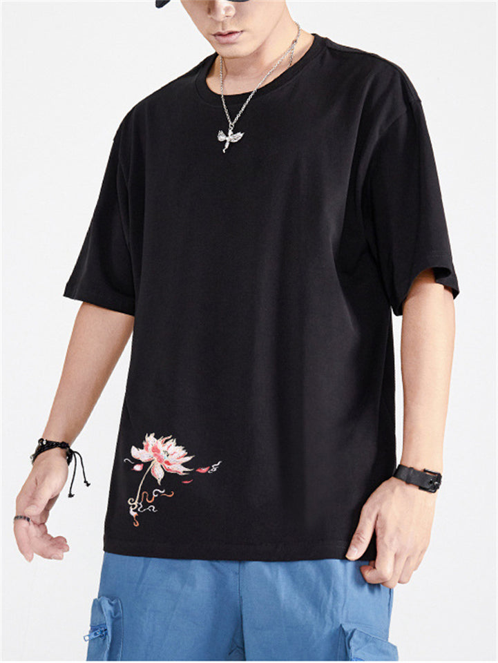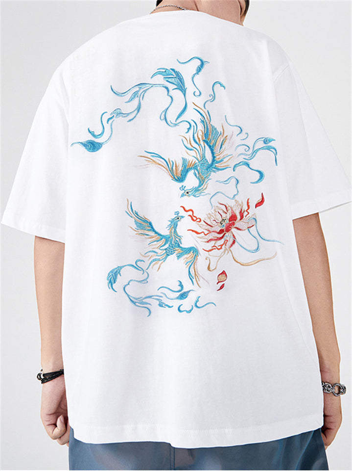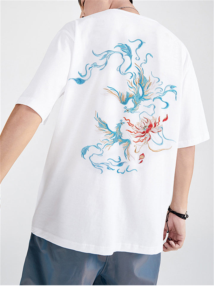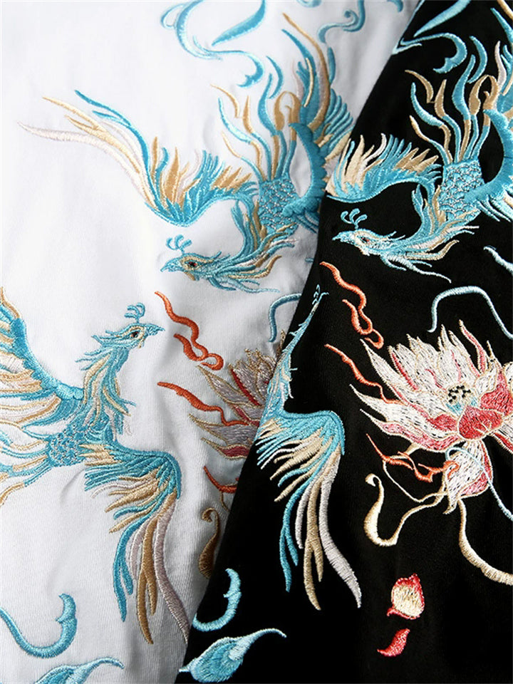 Fashion Male Cotton Casual Half Sleeve Shirts With Phoenix Embroidery