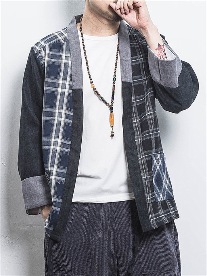 Men's Autumn Vintage Jacquard Stand Collar Long Sleeve Shirts