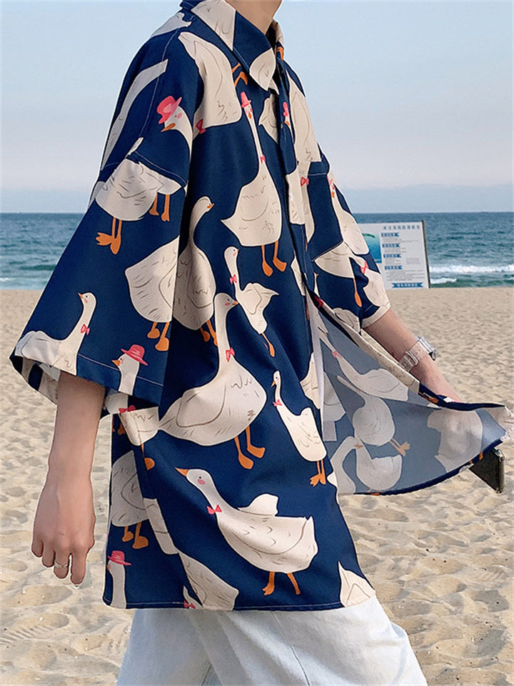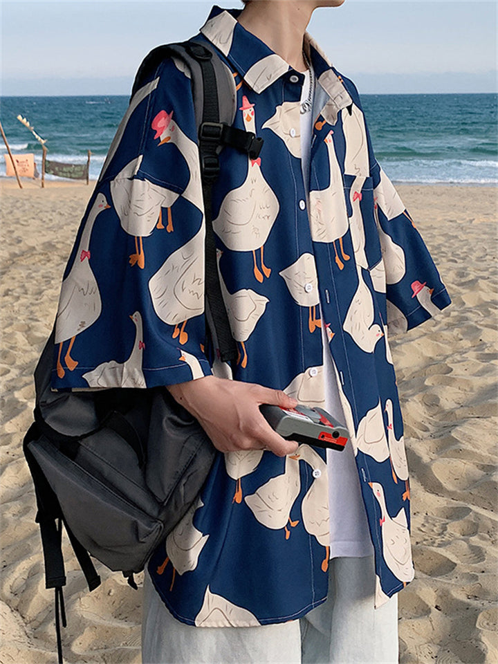 Half Sleeve Men's Beach Silk Tops Summer Shirts