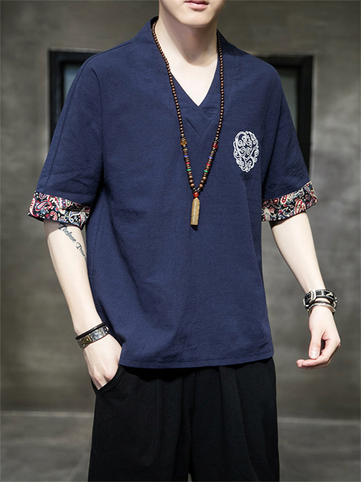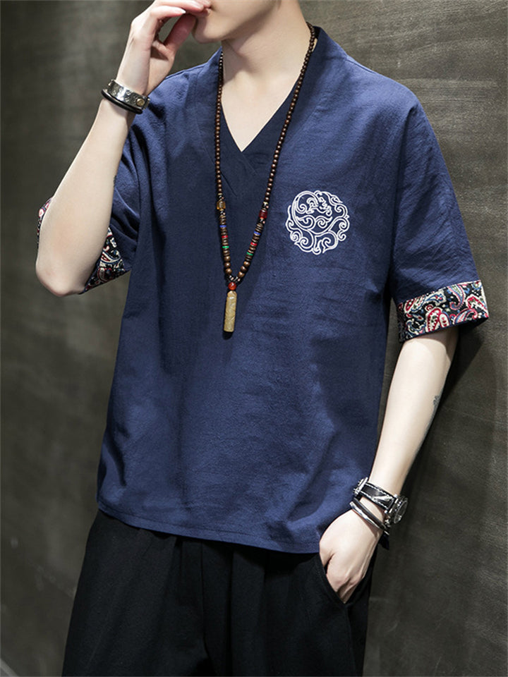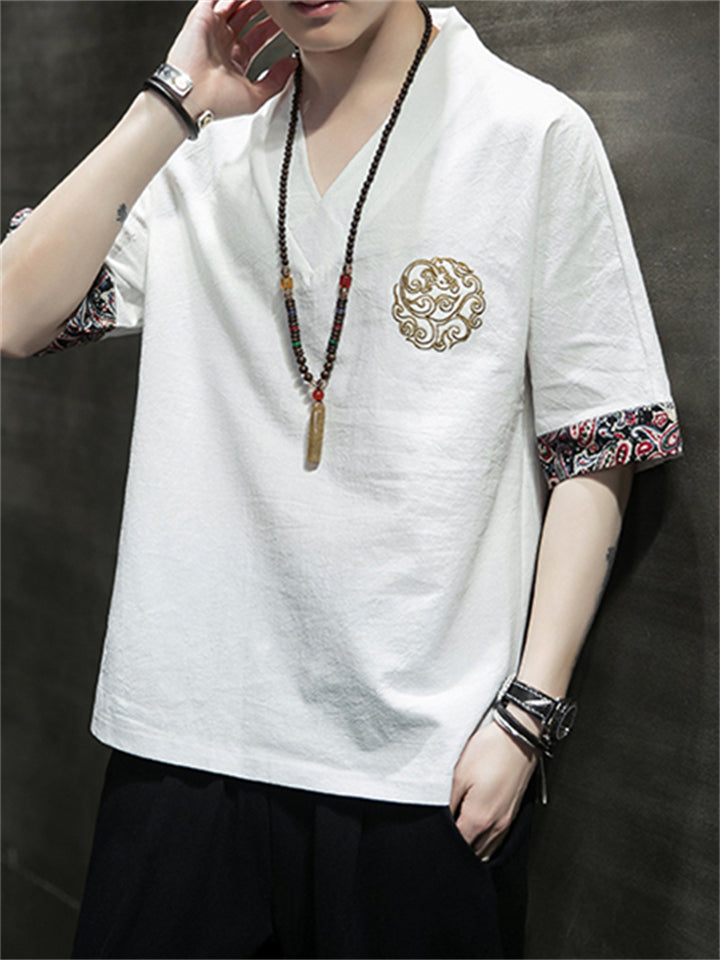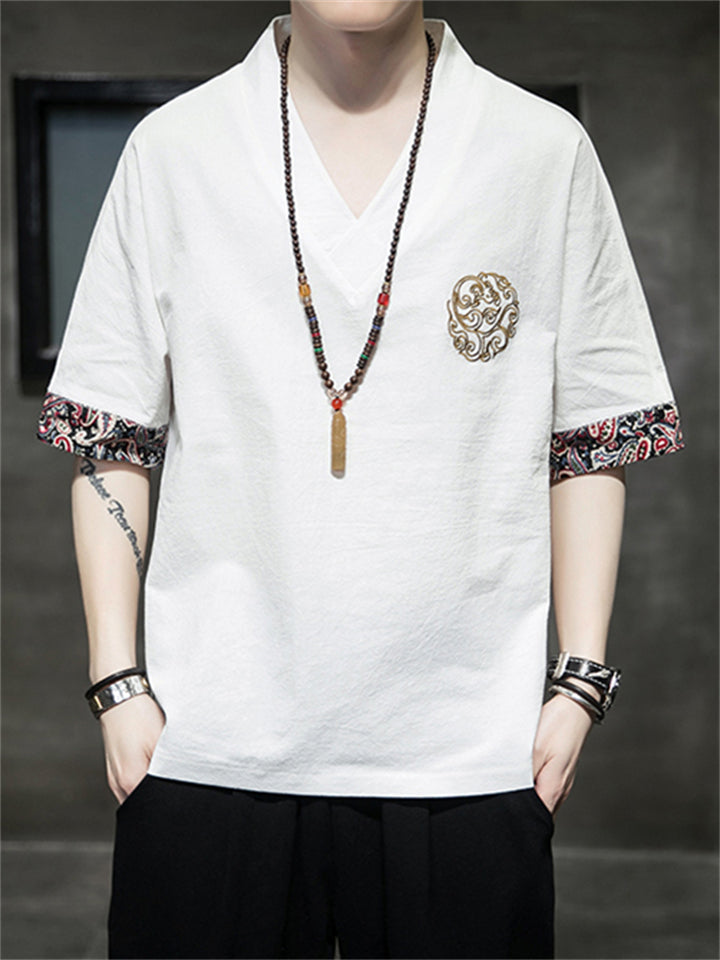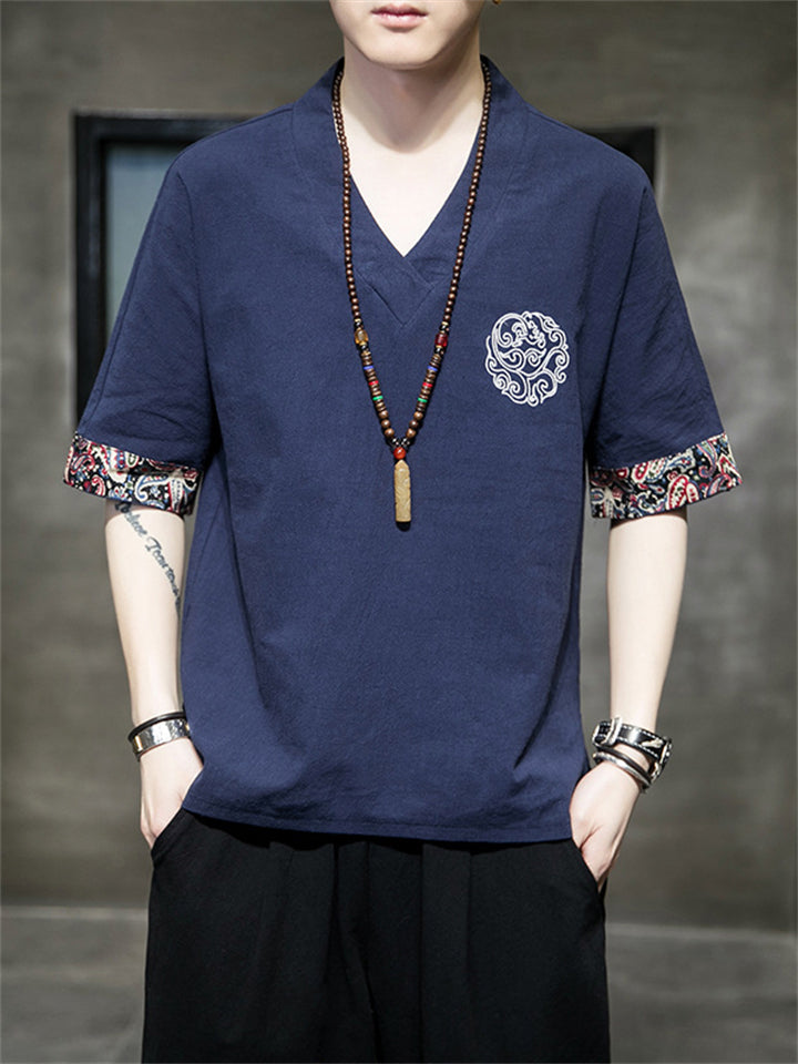 Men's Vintage Patchwork Ethnic Style Printed Half Sleeve Shirts