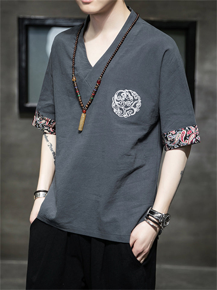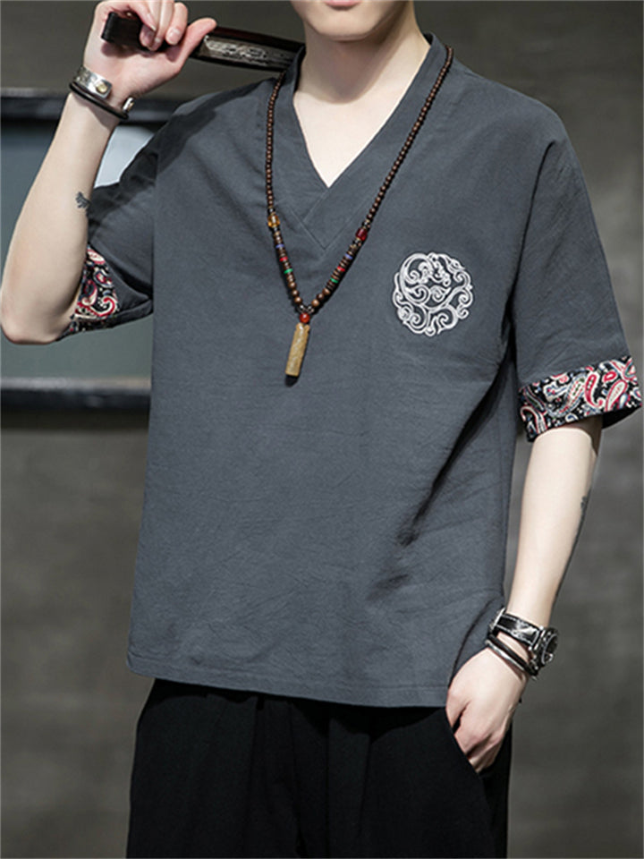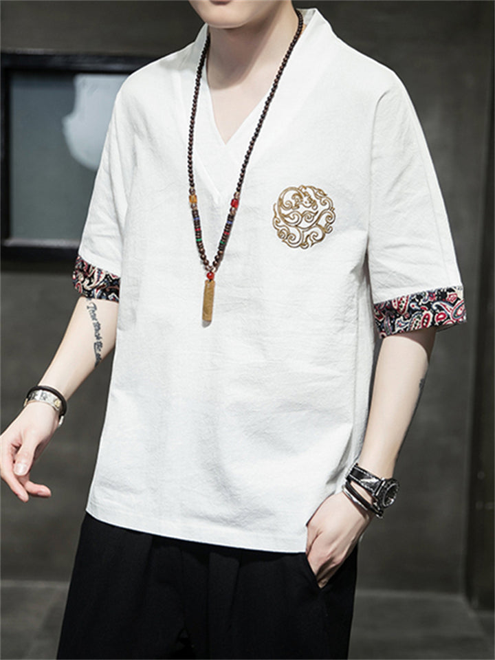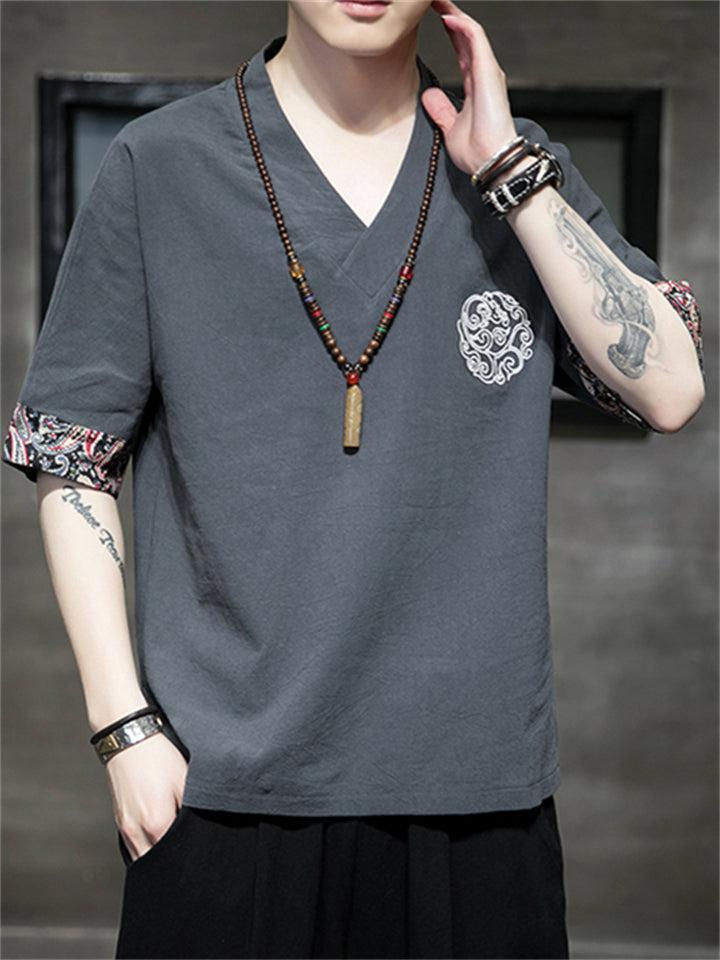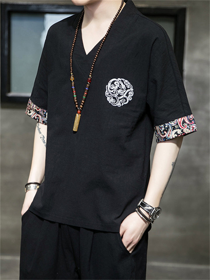 Men's Vintage Patchwork Ethnic Style Printed Half Sleeve Shirts