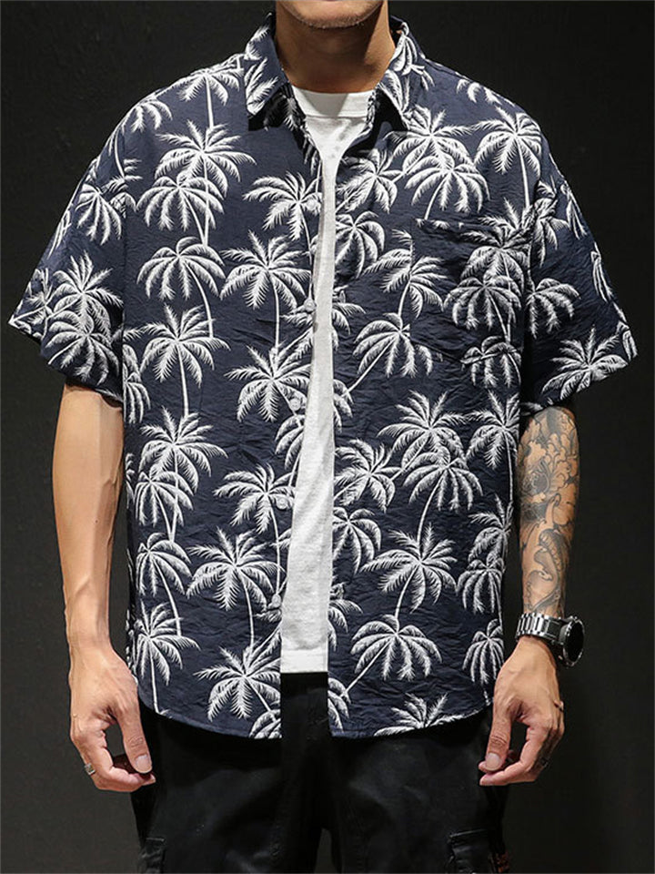 Japanese Style Printed Holiday Relaxed Original Design Men's Shirts