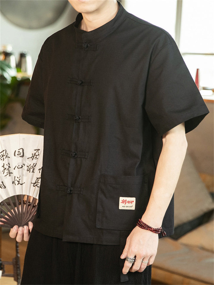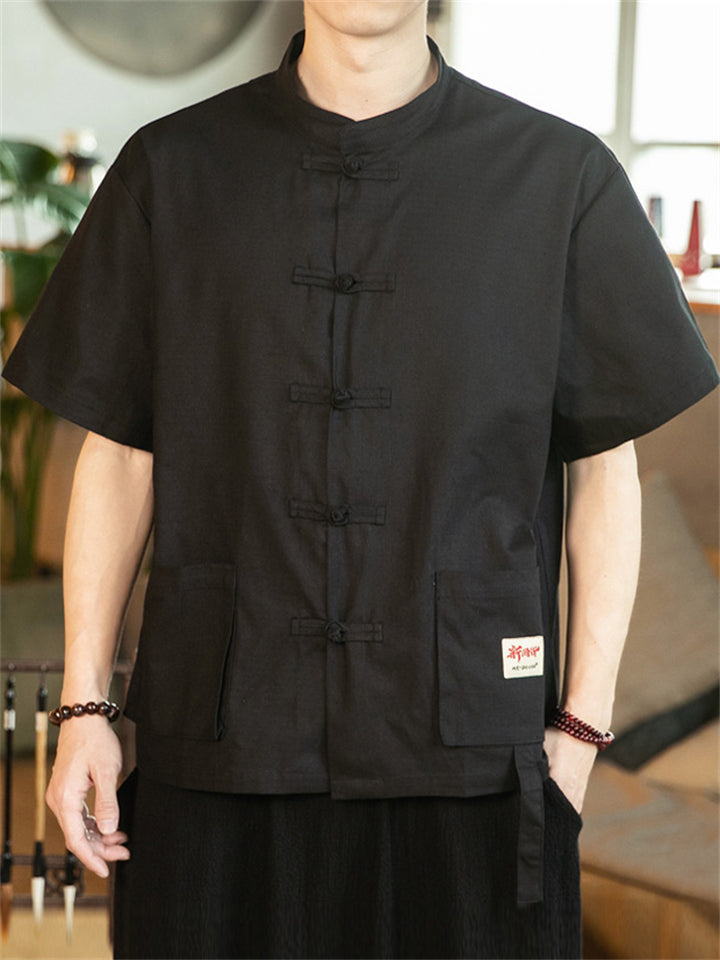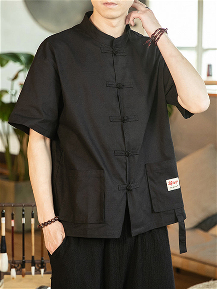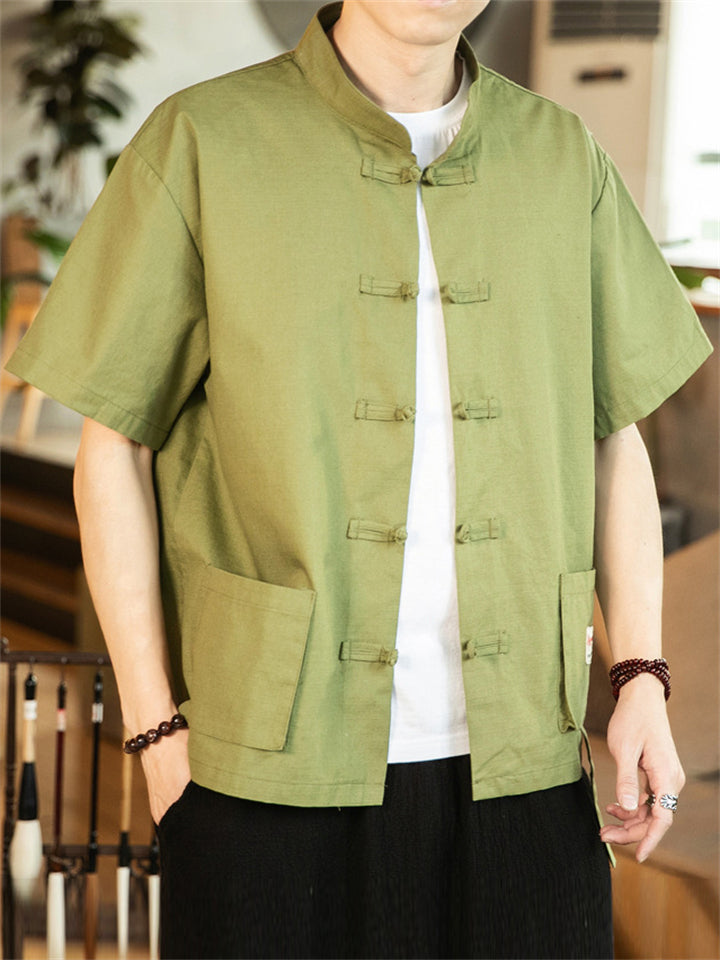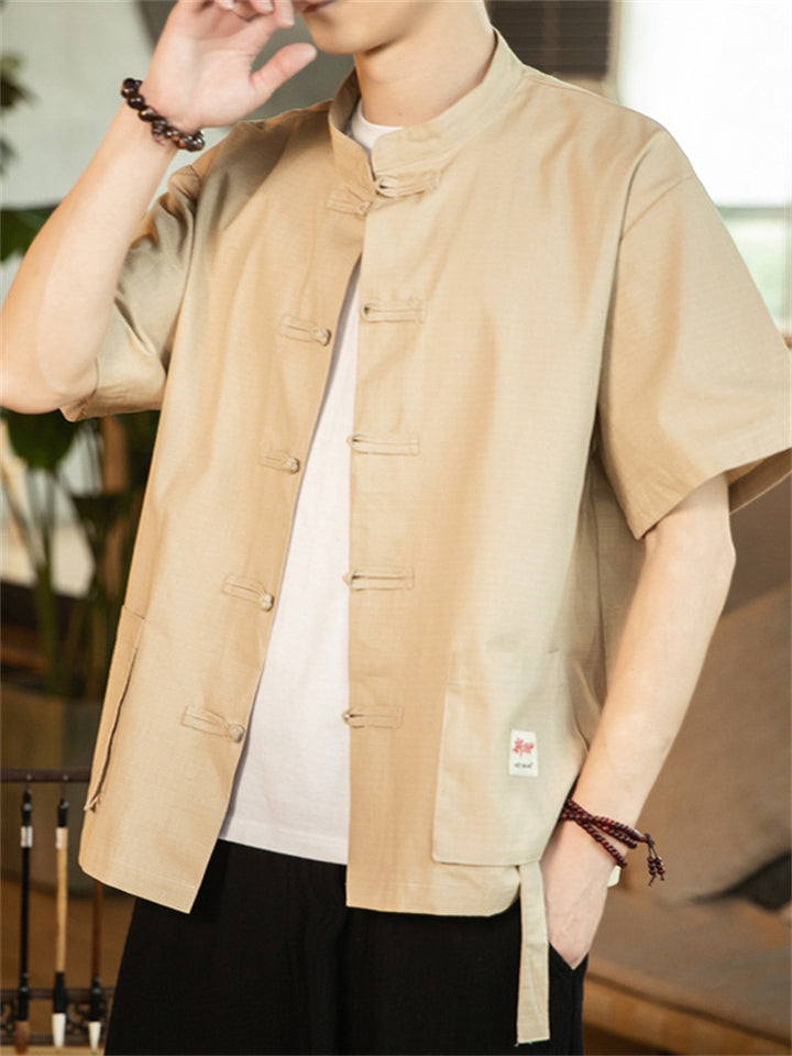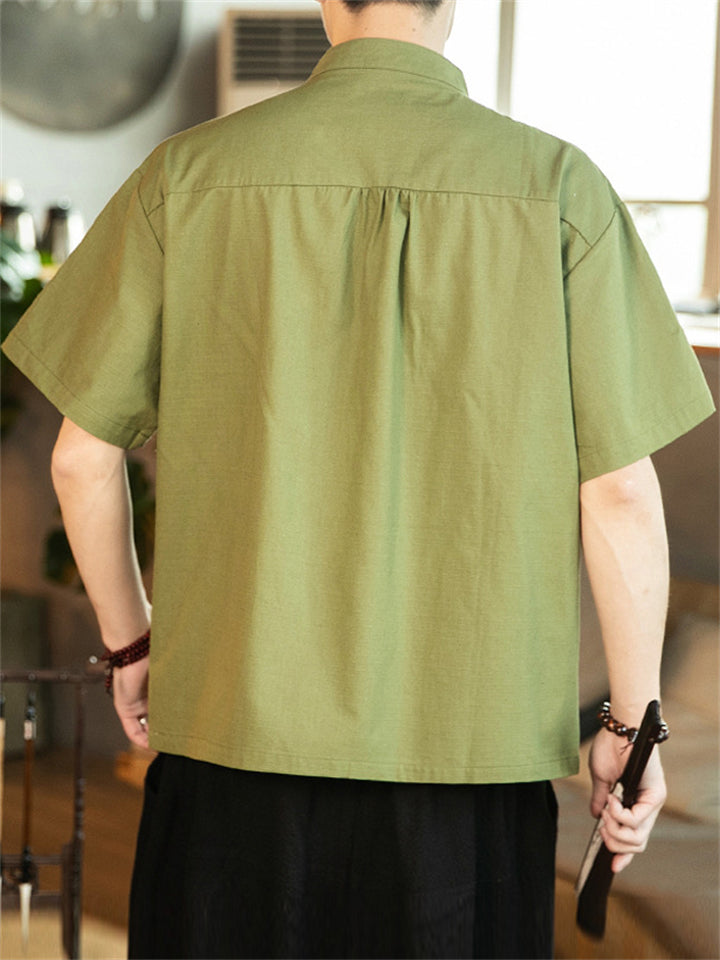 Men's Simple Chinese Style Ramine Stand Collar Tangsuit Shirts