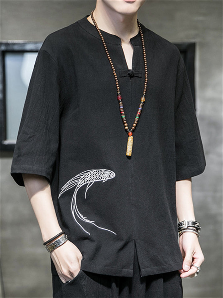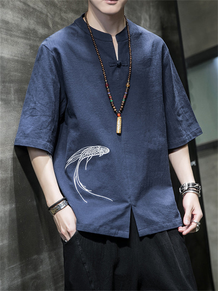 Loose Fish Embroidered Pullover T-Shirts