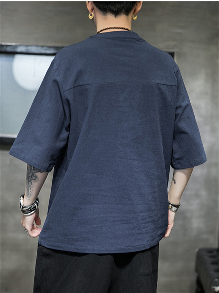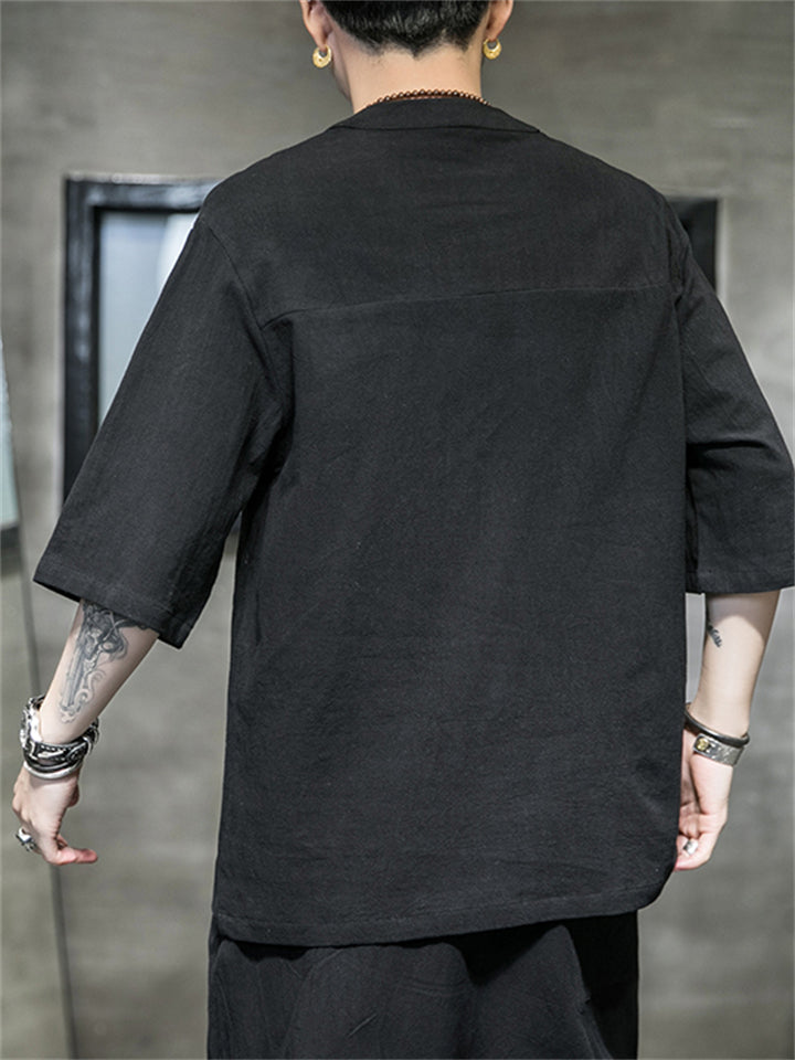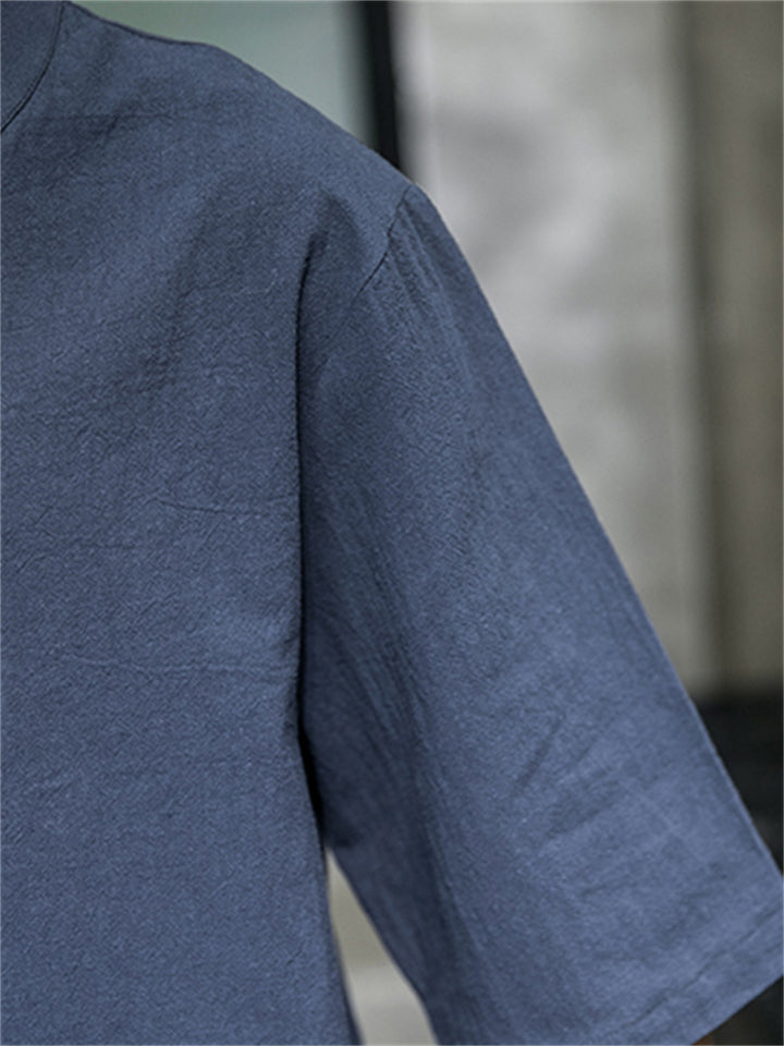 Men's Vintage Summer Solid Color 3/4 Sleeve Stand Collar Shirts