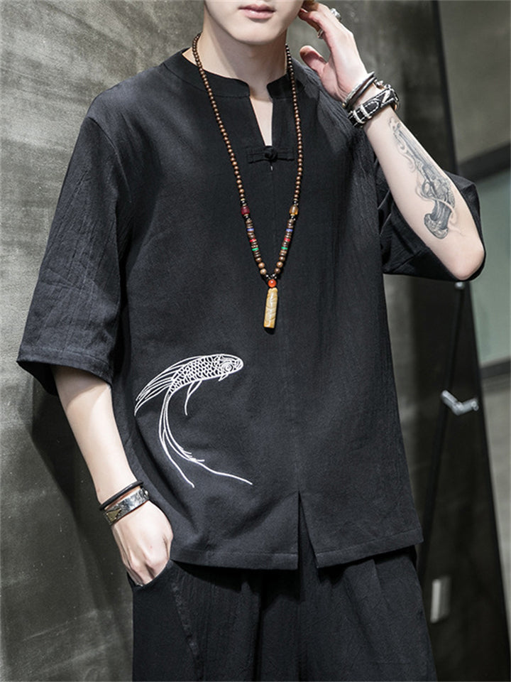 Men's Autumn Vintage Chinese Style Printed Frog Button Tangsuit Shirts