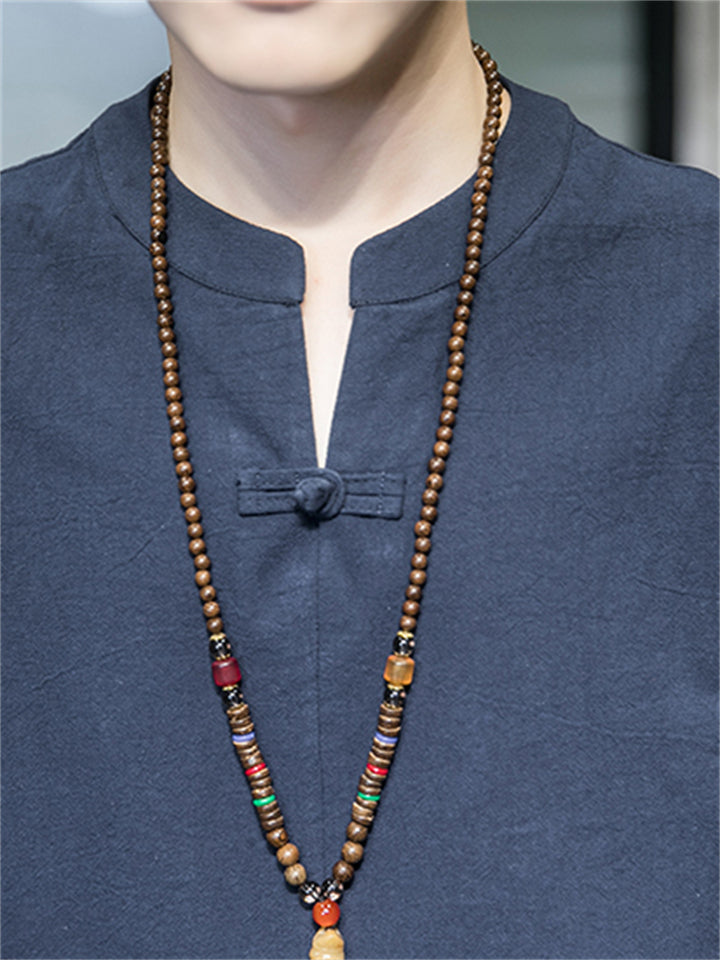 Men's Autumn Solid Color Zen Style Pullover Long Sleeve Shirts