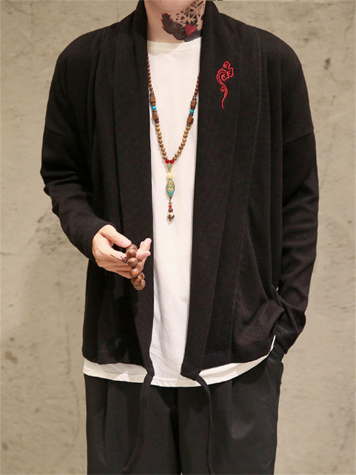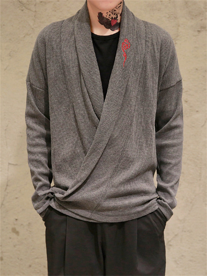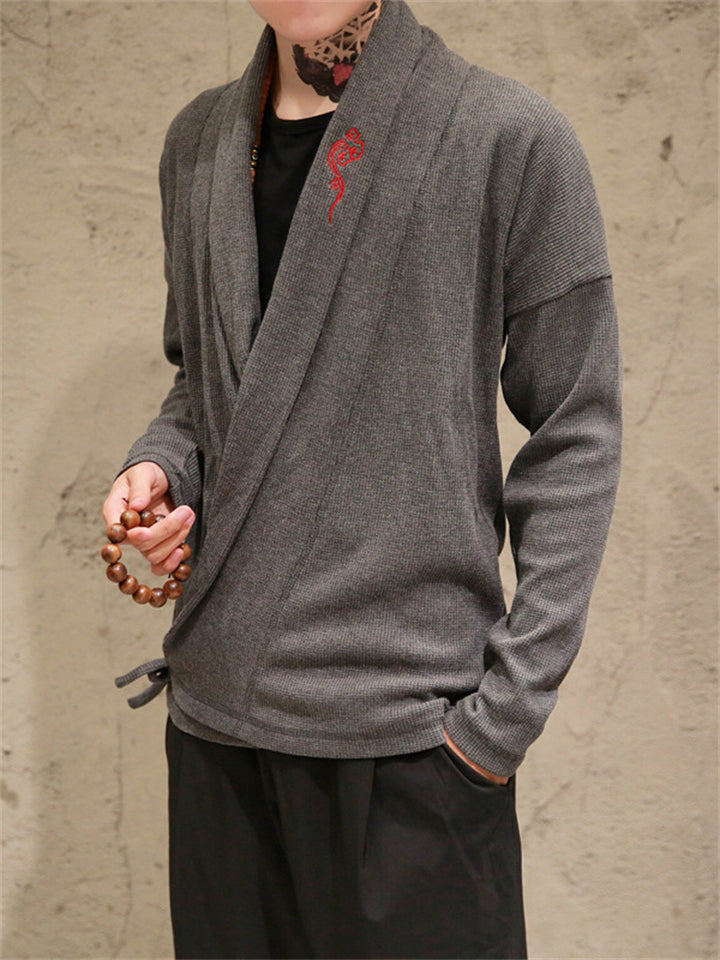Men's Autumn Solid Color Zen Style Pullover Long Sleeve Shirts