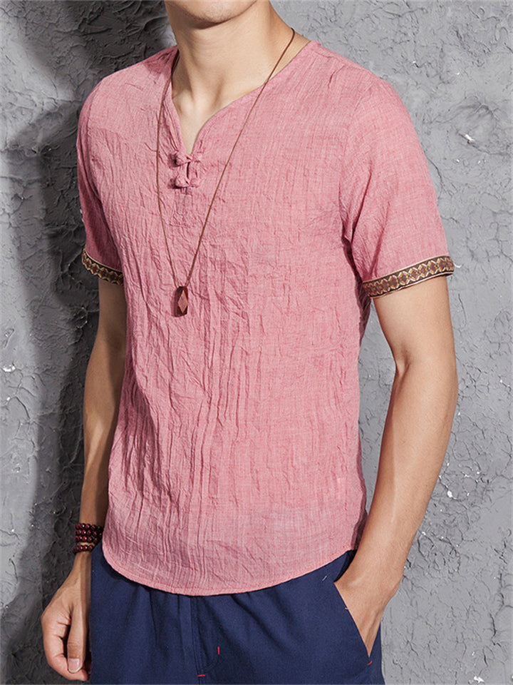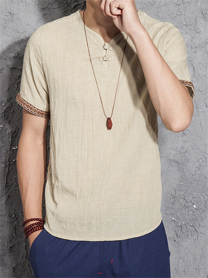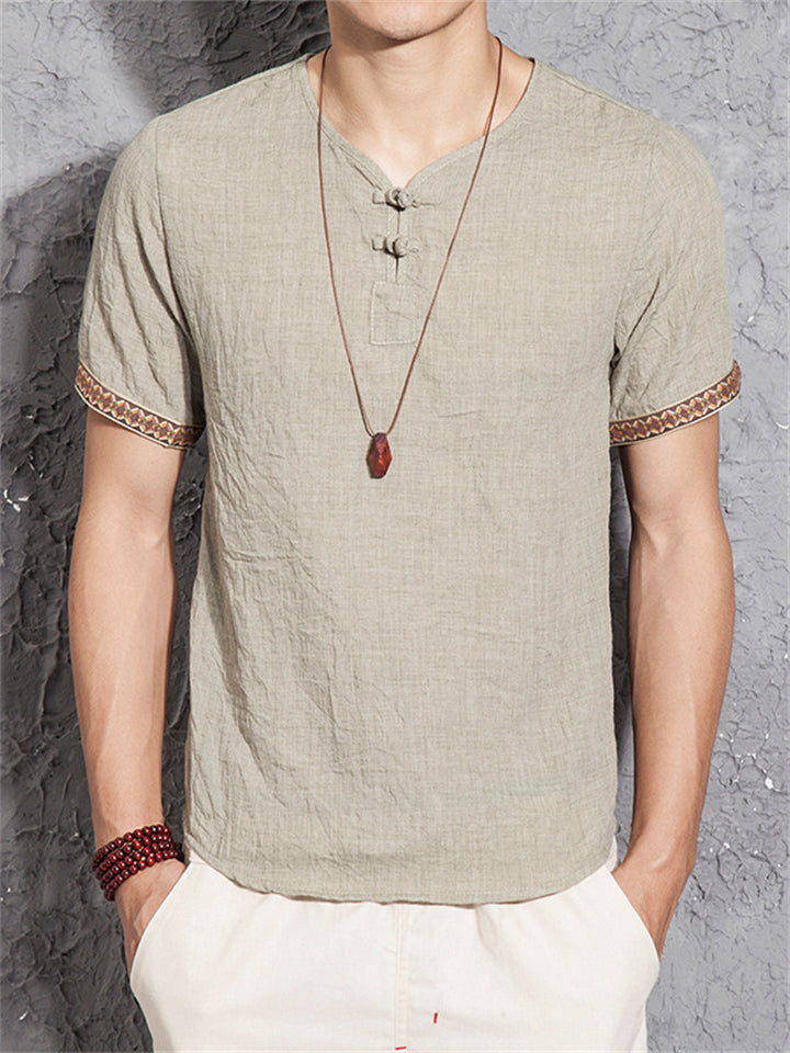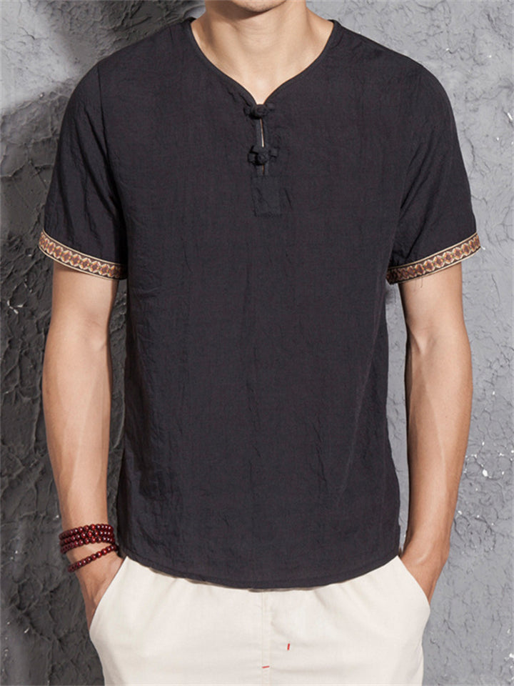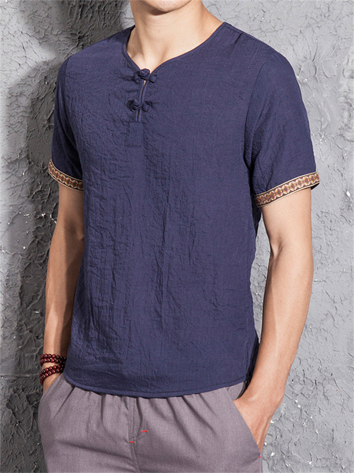 Men's Simple Solid Color Stand Collar Pullover Short Sleeve Shirts