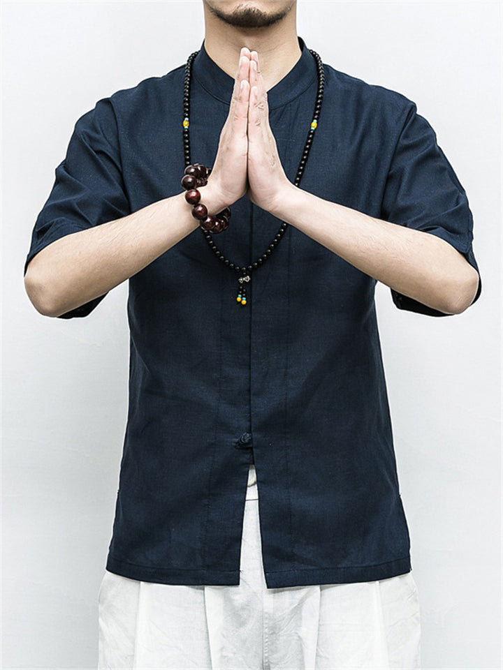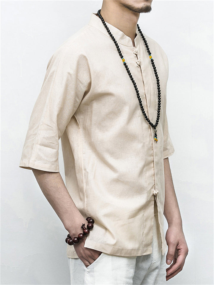 Men's Vintage Summer Solid Color 3/4 Sleeve Stand Collar Shirts