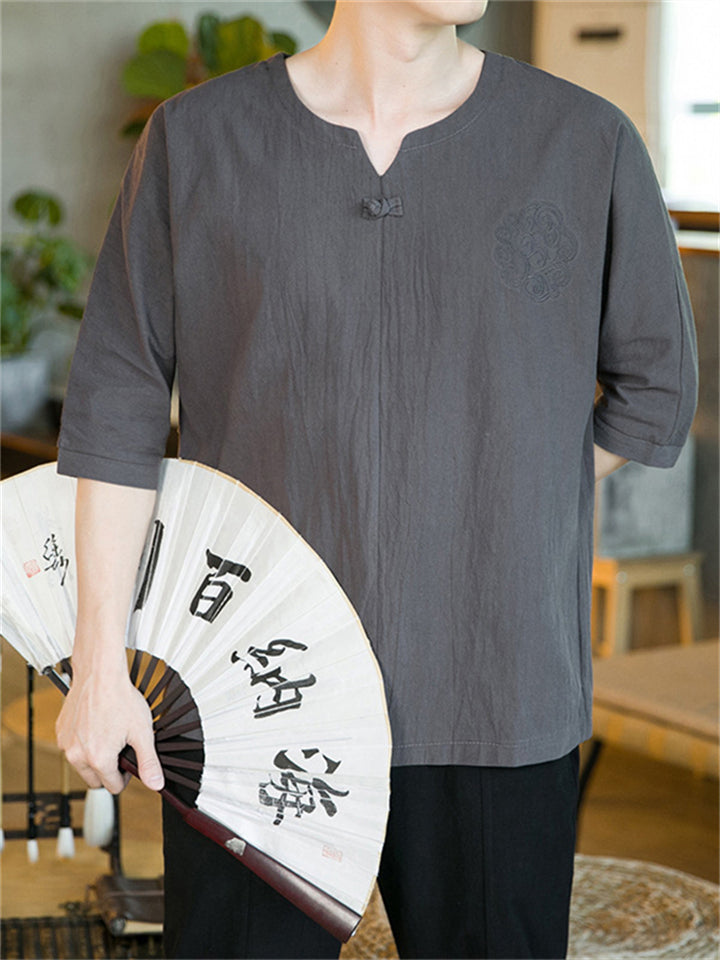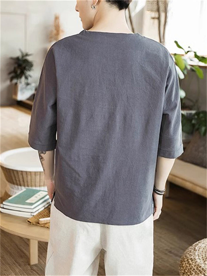 Men's Vintage Summer Solid Color 3/4 Sleeve Stand Collar Shirts
