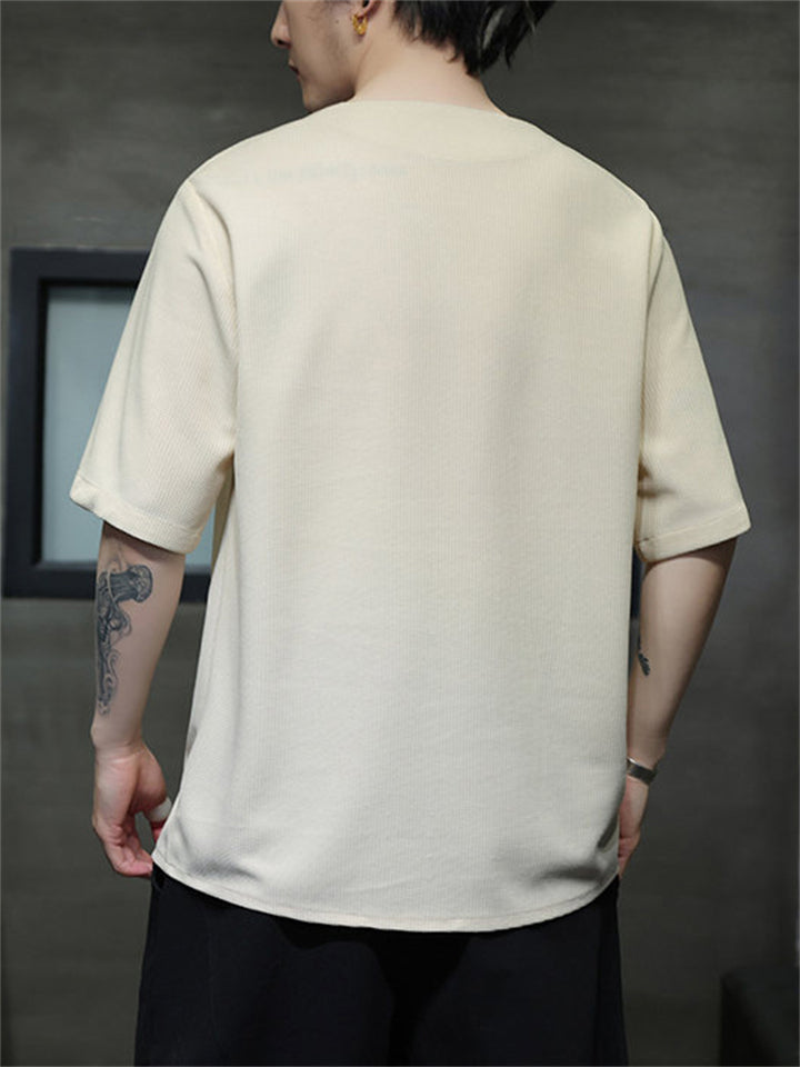Men's Simple Solid Color Stand Collar Pullover Short Sleeve Shirts