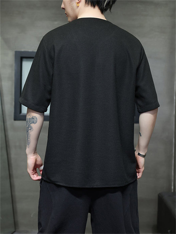 Men's Autumn Solid Color Zen Style Pullover Long Sleeve Shirts