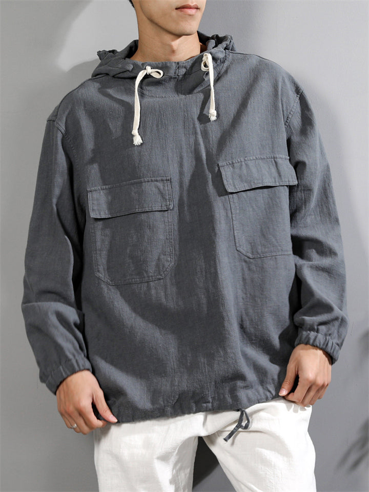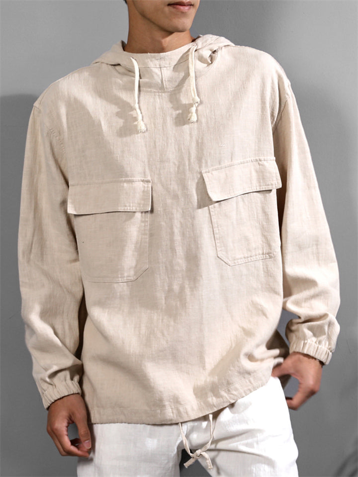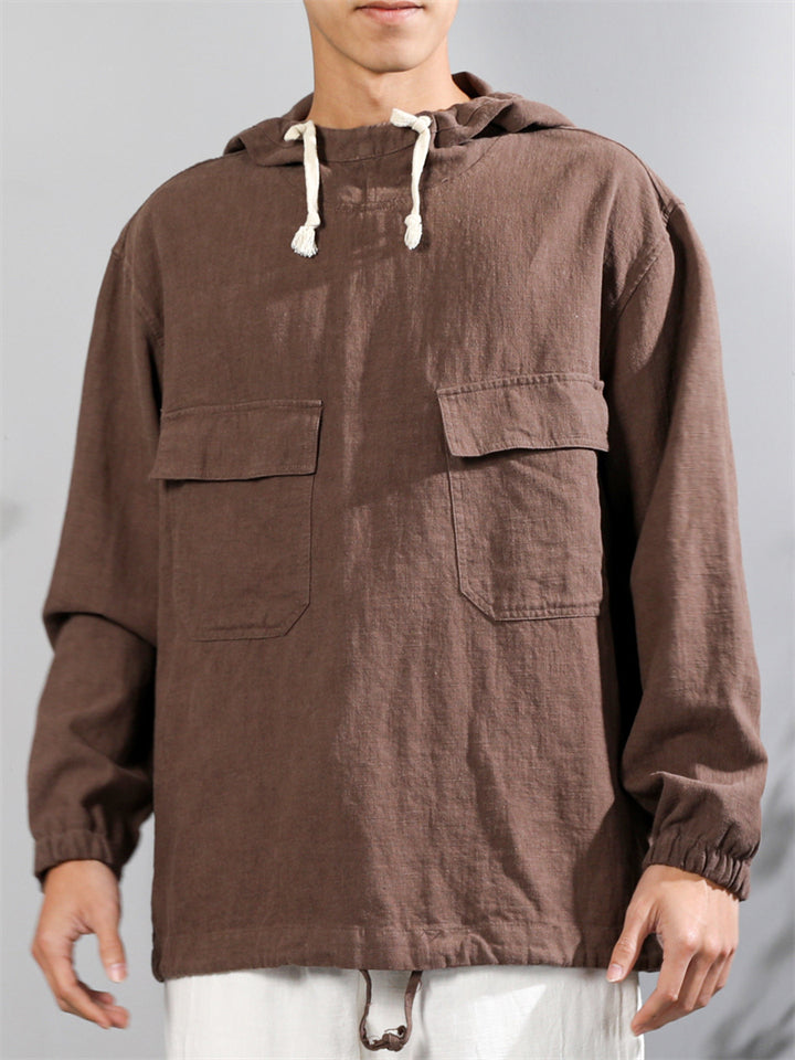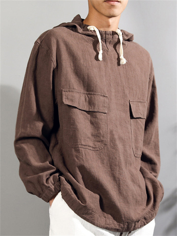 Men's Autumn Solid Color Zen Style Pullover Long Sleeve Shirts