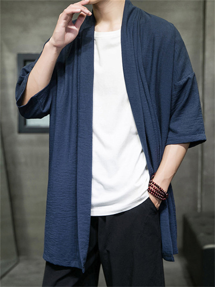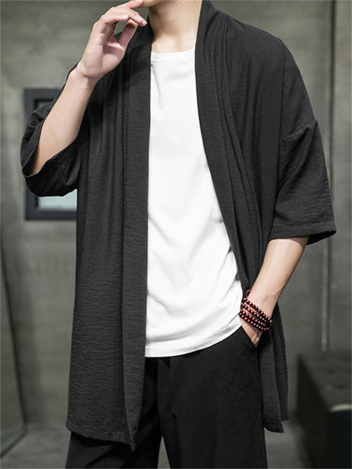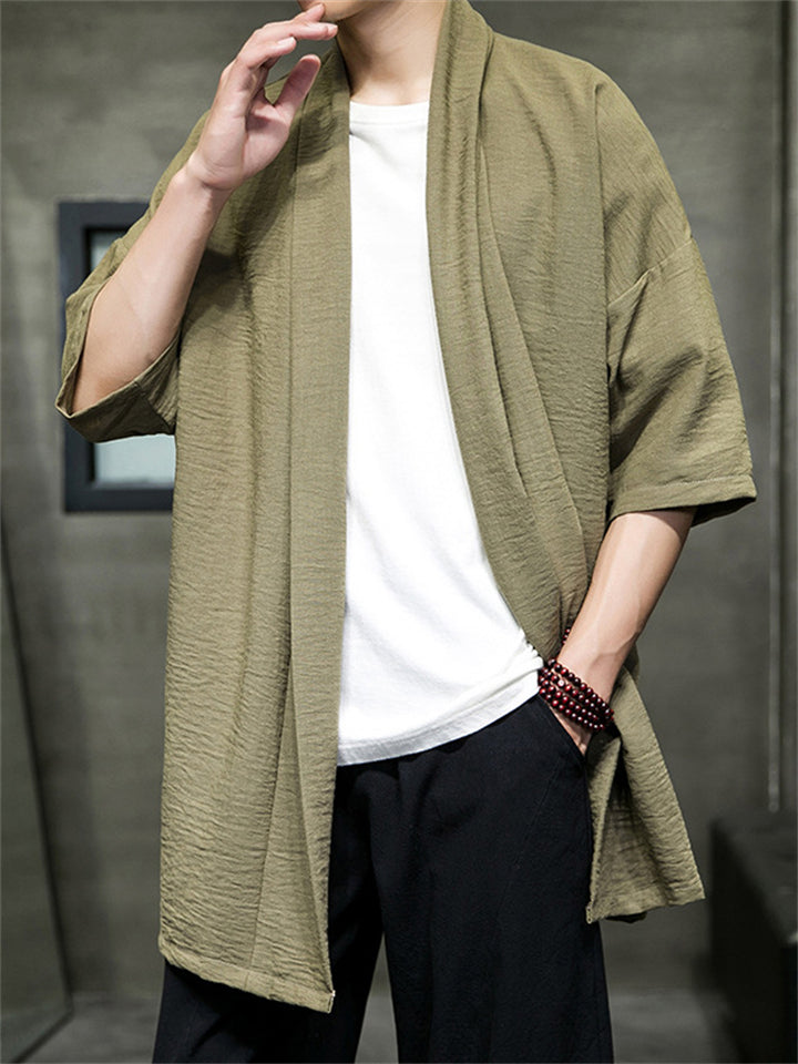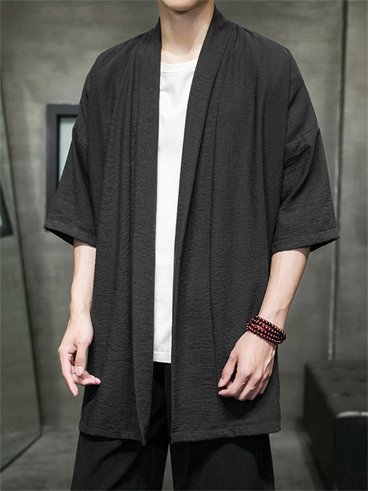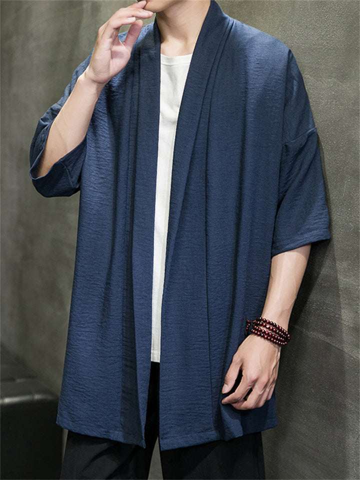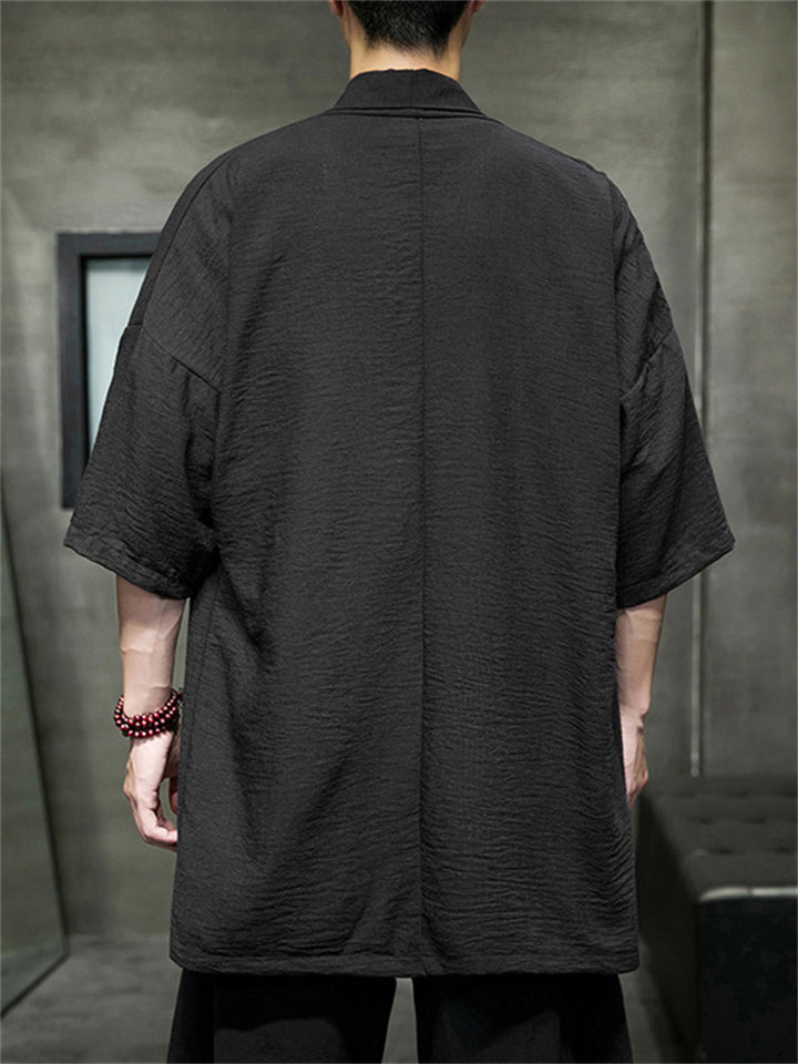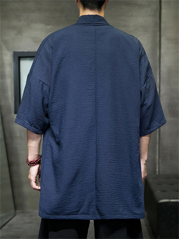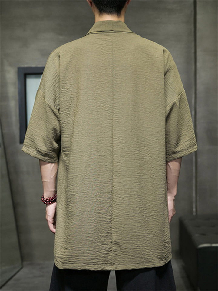 Male Simple Pure Color Chinese Style Open Front Shirts