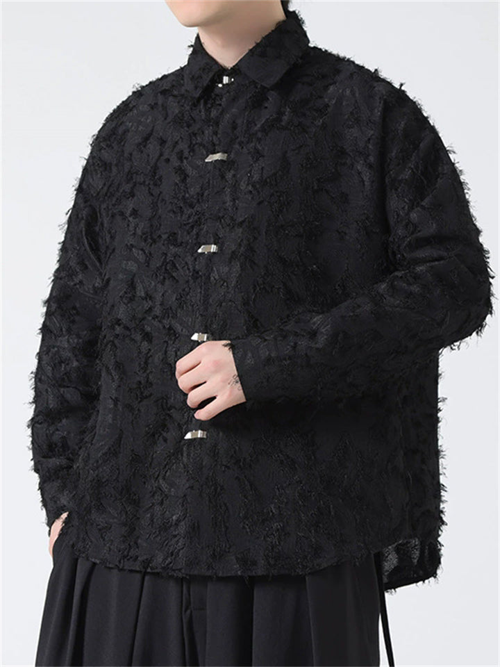 Men's Autumn Vintage Jacquard Stand Collar Long Sleeve Shirts
