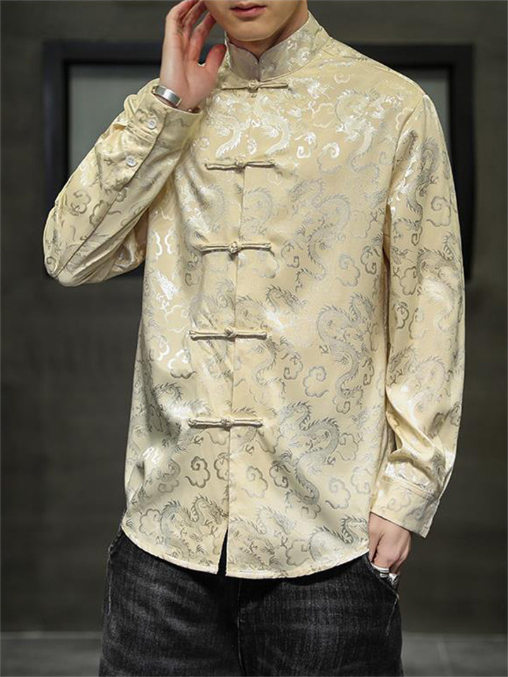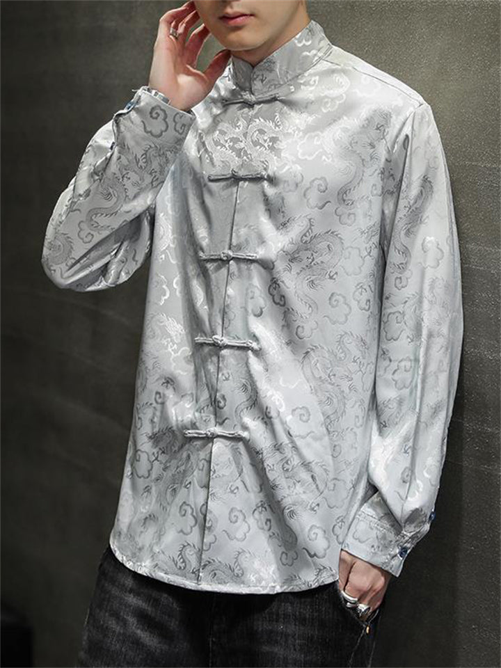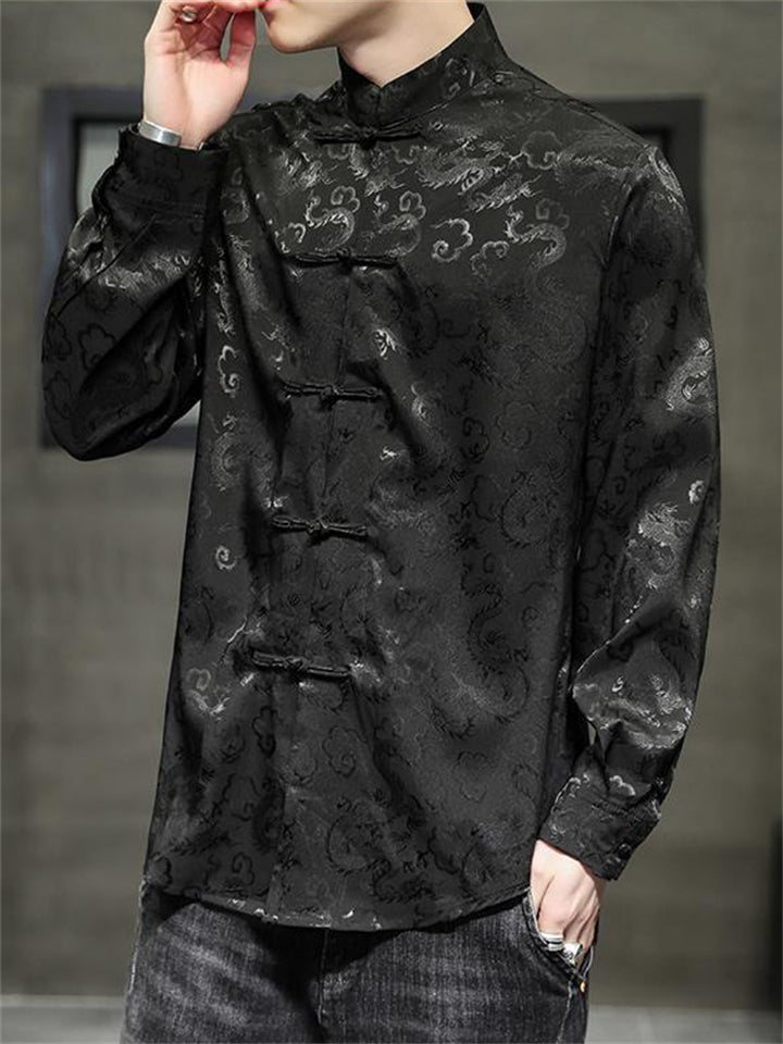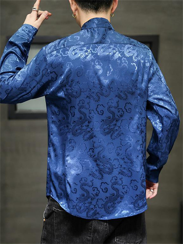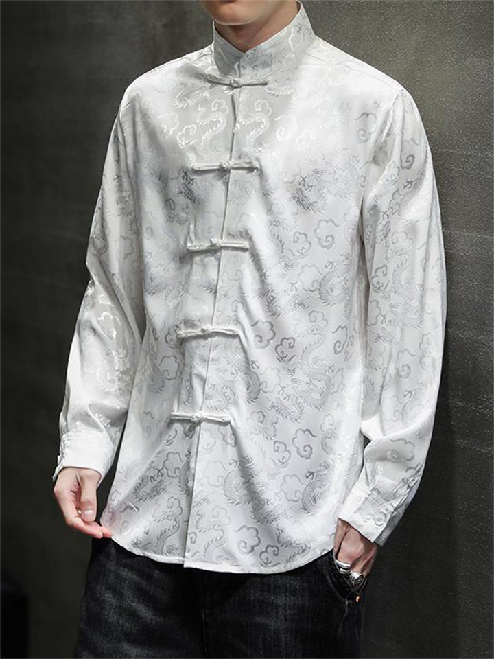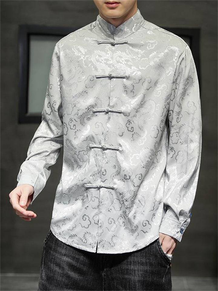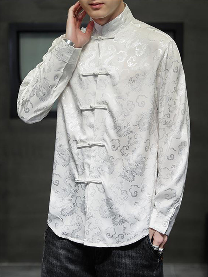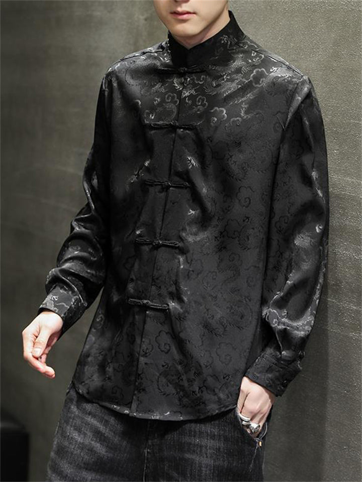 Men's Ancient Loong Cloud Print Retro Tang Suit Shirt