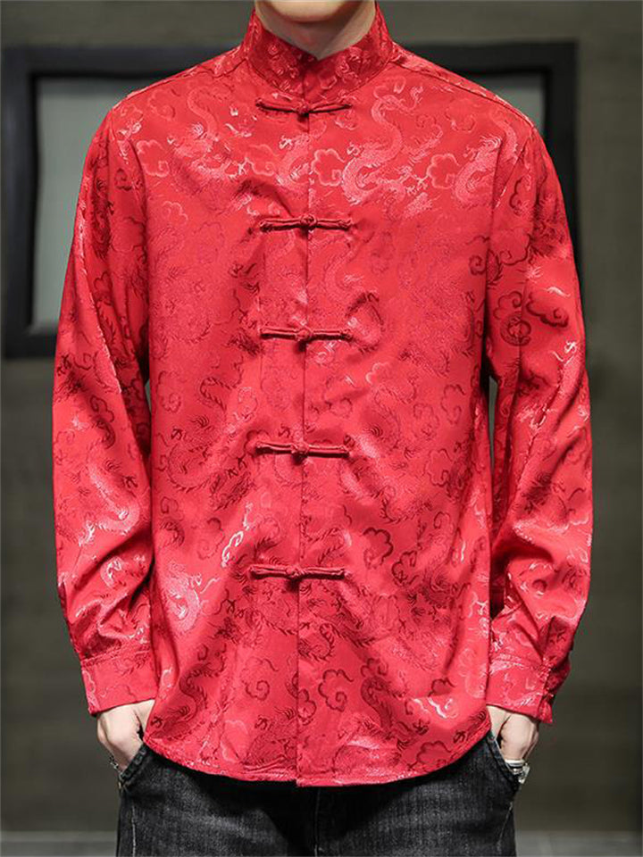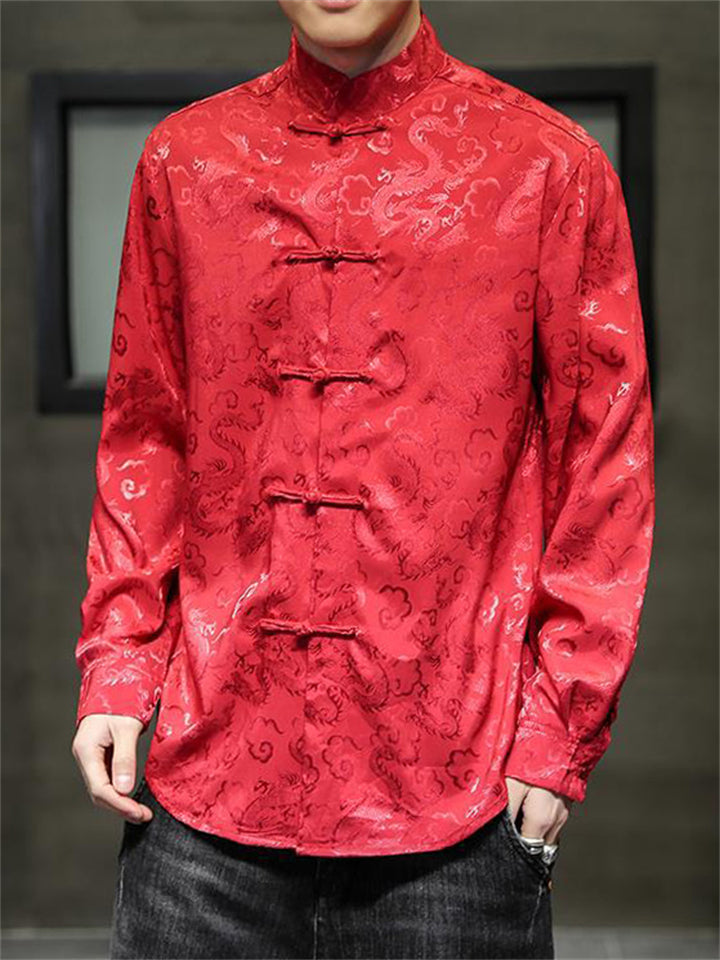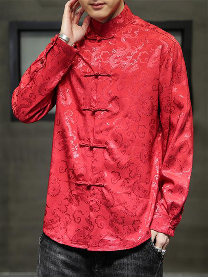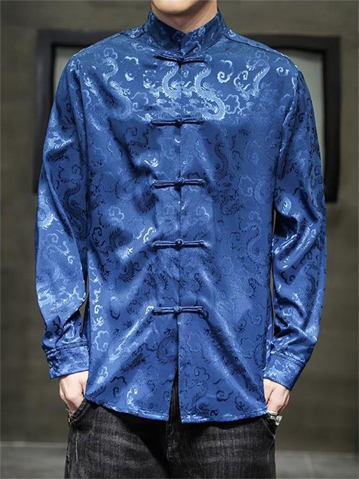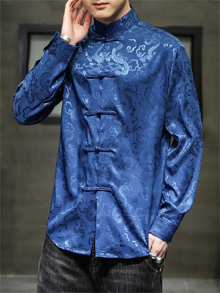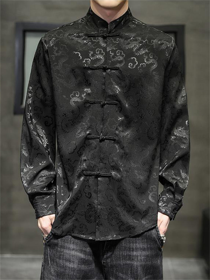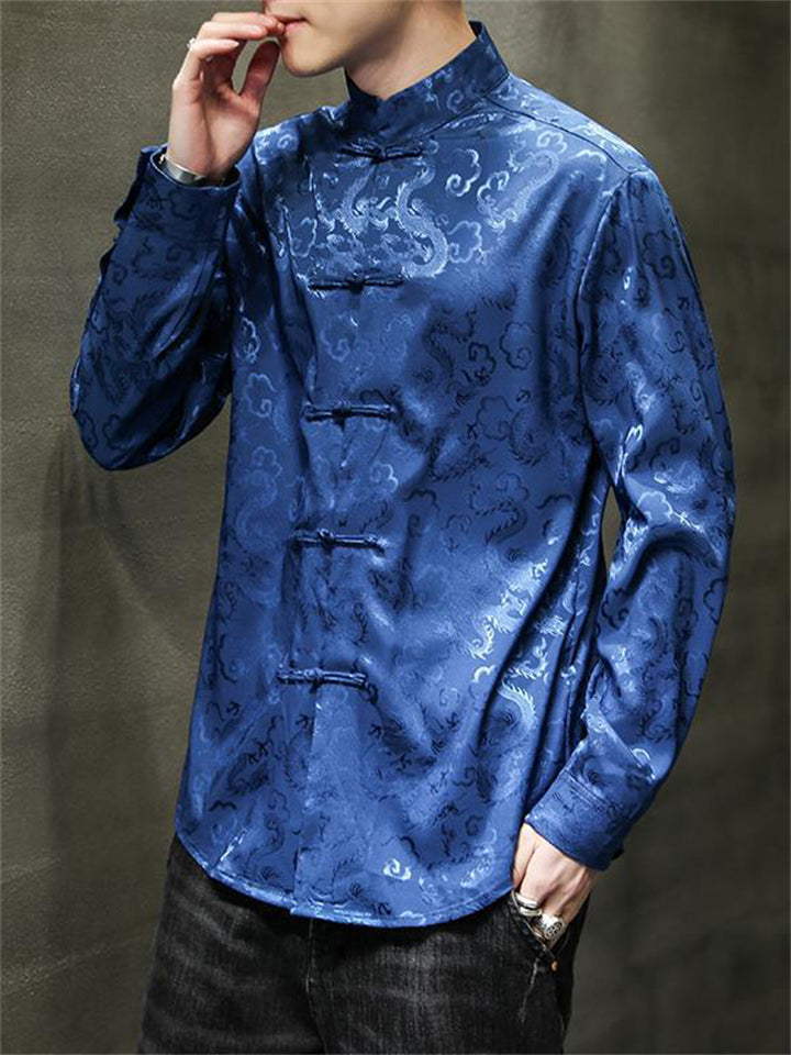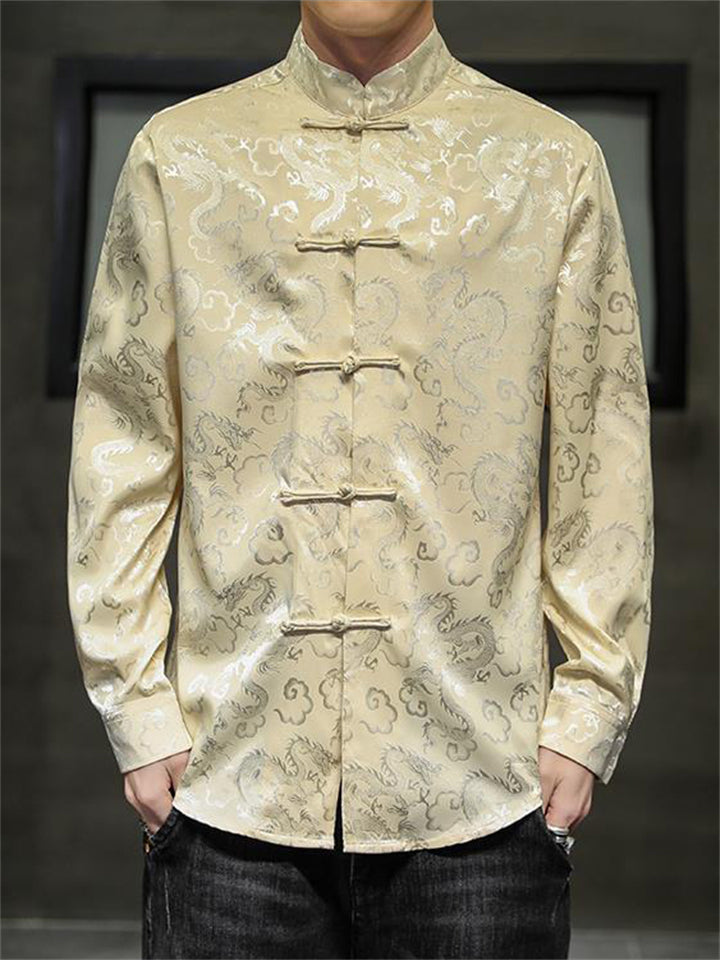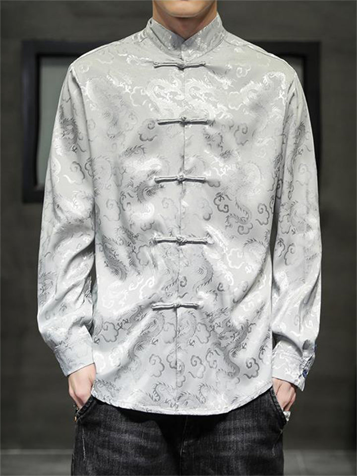 Men's Ancient Loong Cloud Print Retro Tang Suit Shirt