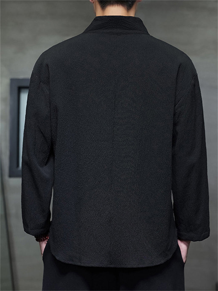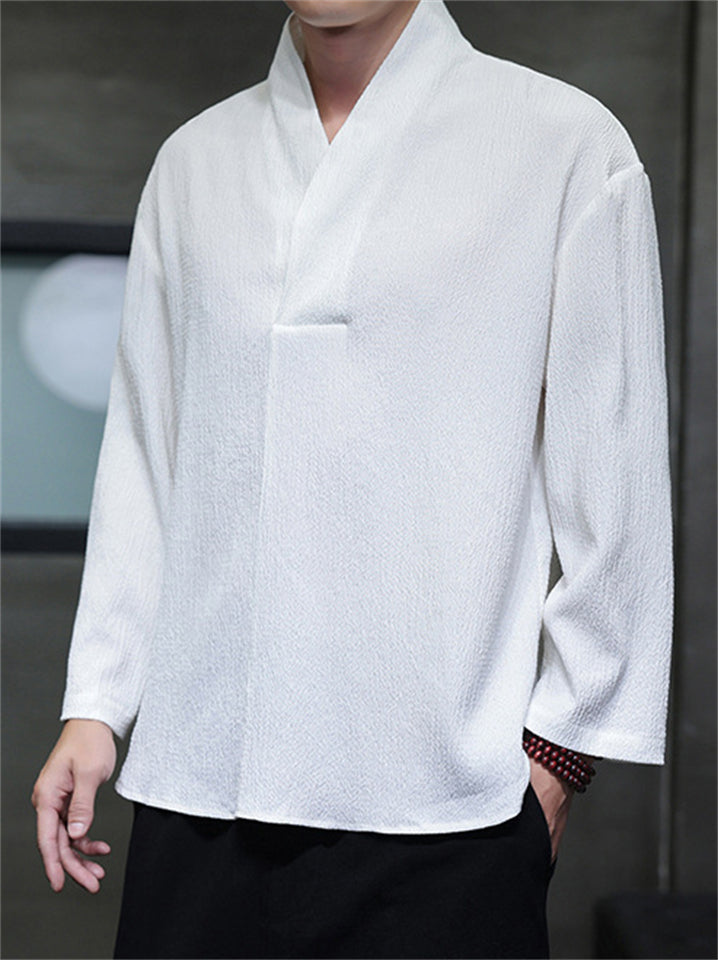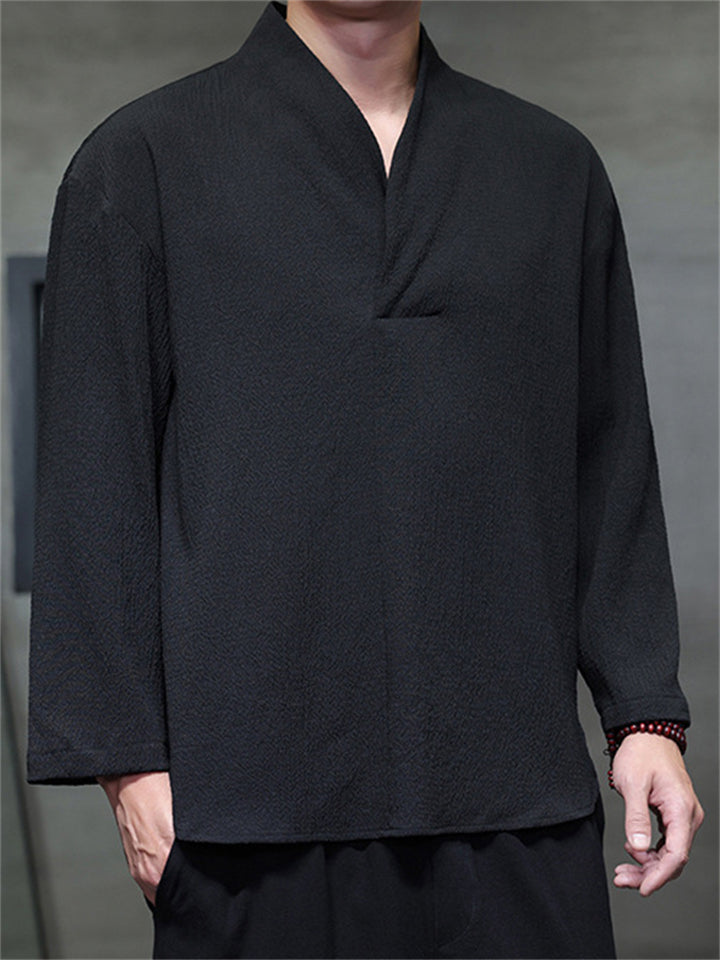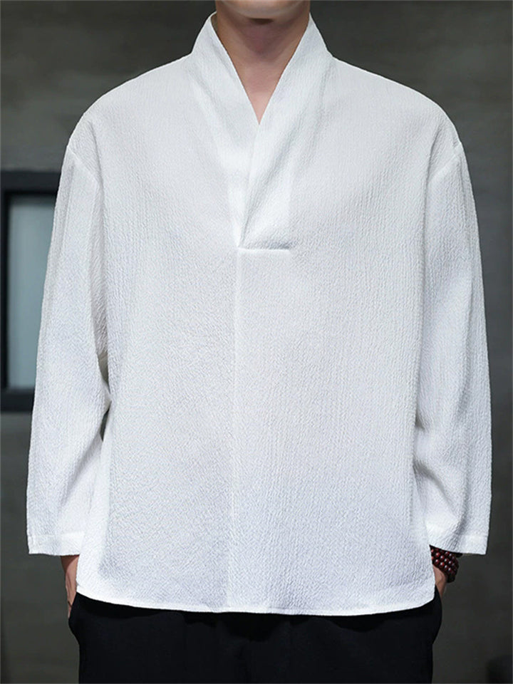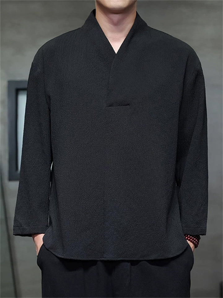 Men's Autumn Solid Color Zen Style Pullover Long Sleeve Shirts