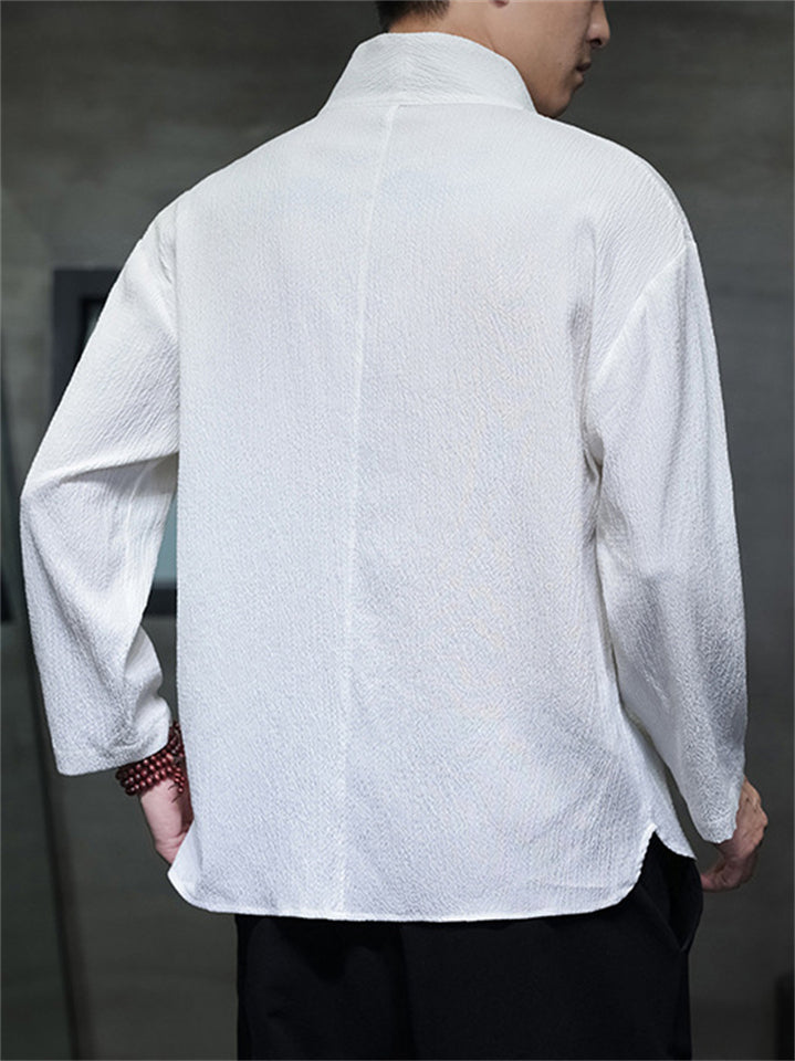 Men's Simple Chinese Style Ramine Stand Collar Tangsuit Shirts