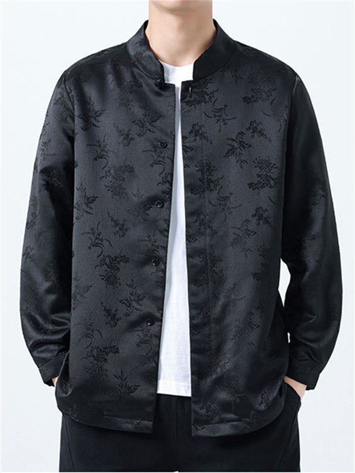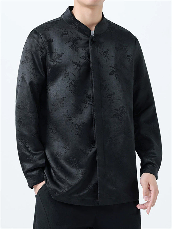 Men's Autumn Vintage Jacquard Stand Collar Long Sleeve Shirts