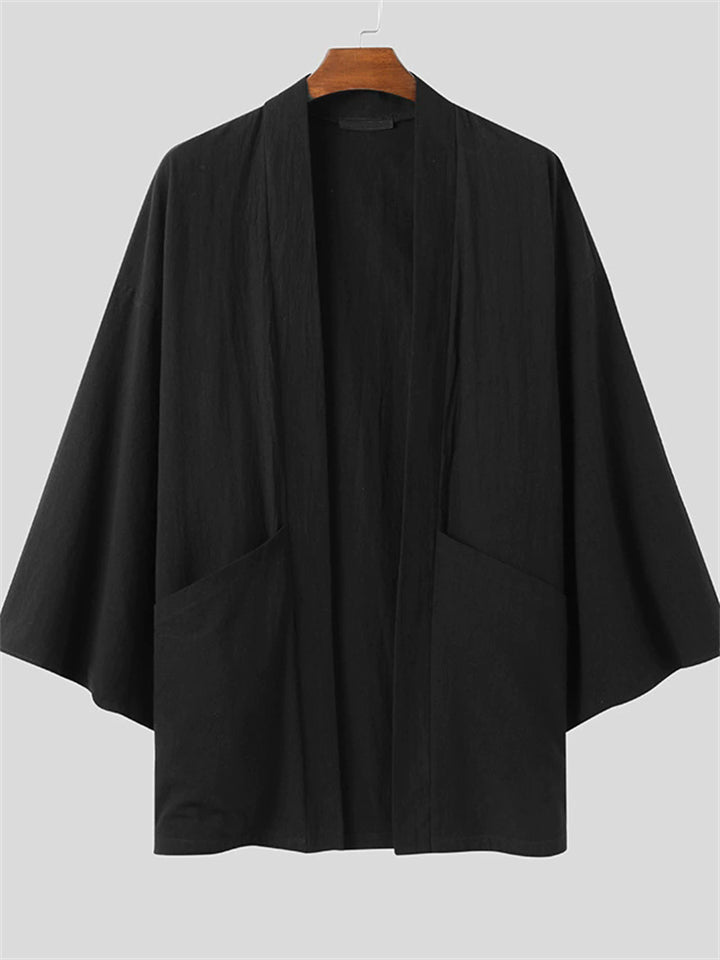 Men's Black Solid Color BatWing Sleeved Cardigan Shirts