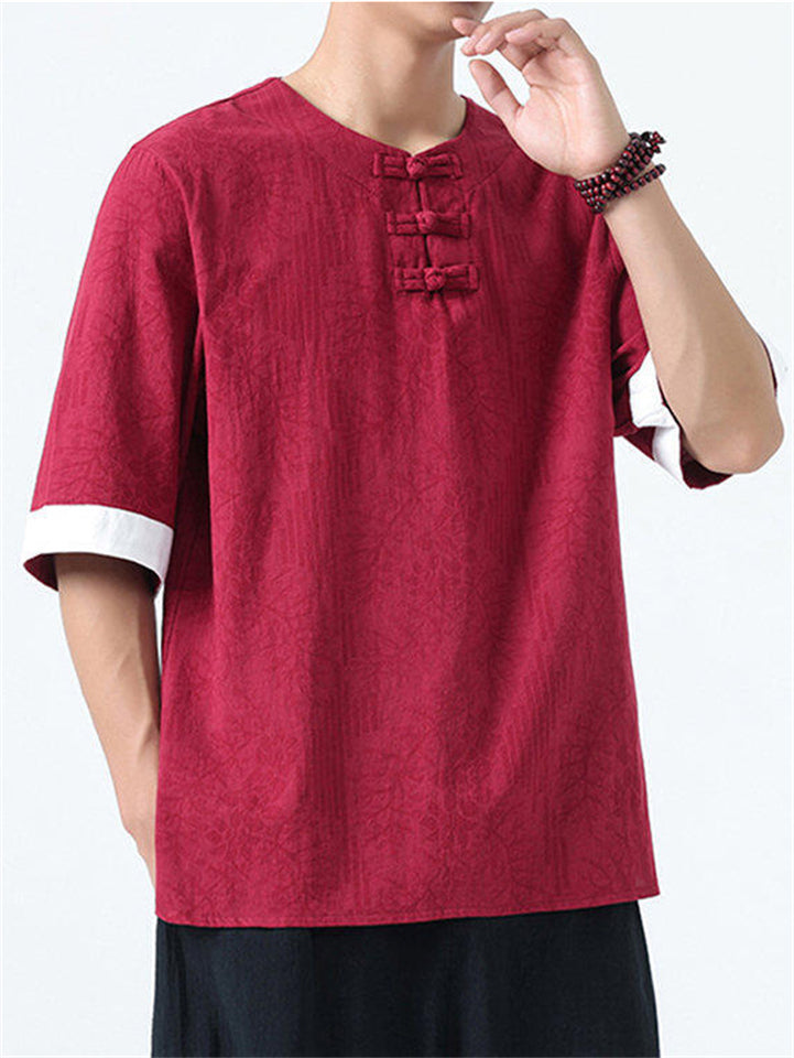 Men's Vintage Summer Solid Color 3/4 Sleeve Stand Collar Shirts
