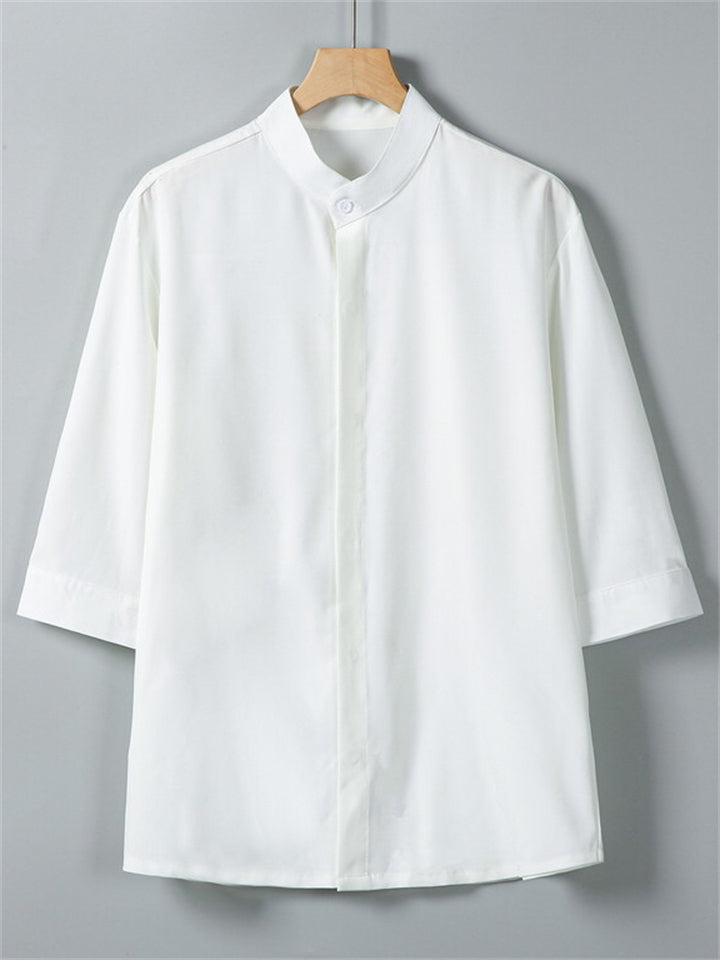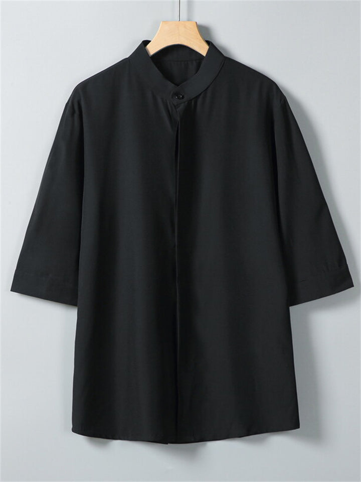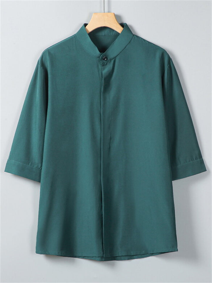 Men's Vintage Summer Solid Color 3/4 Sleeve Stand Collar Shirts